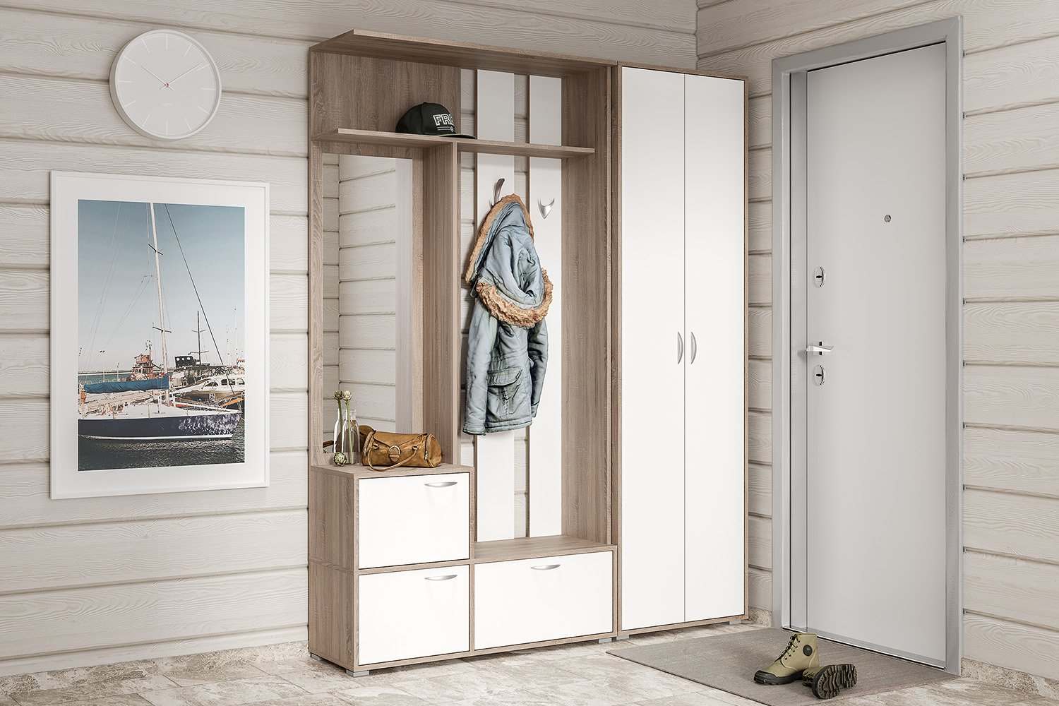 Вешалка 104/02 «Глория» Дуб Винтаж Оксид/Белый шагрень