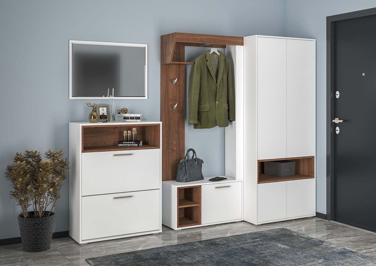 Прихожая «Лайт» Орех Селект каминный/Белый Премиум