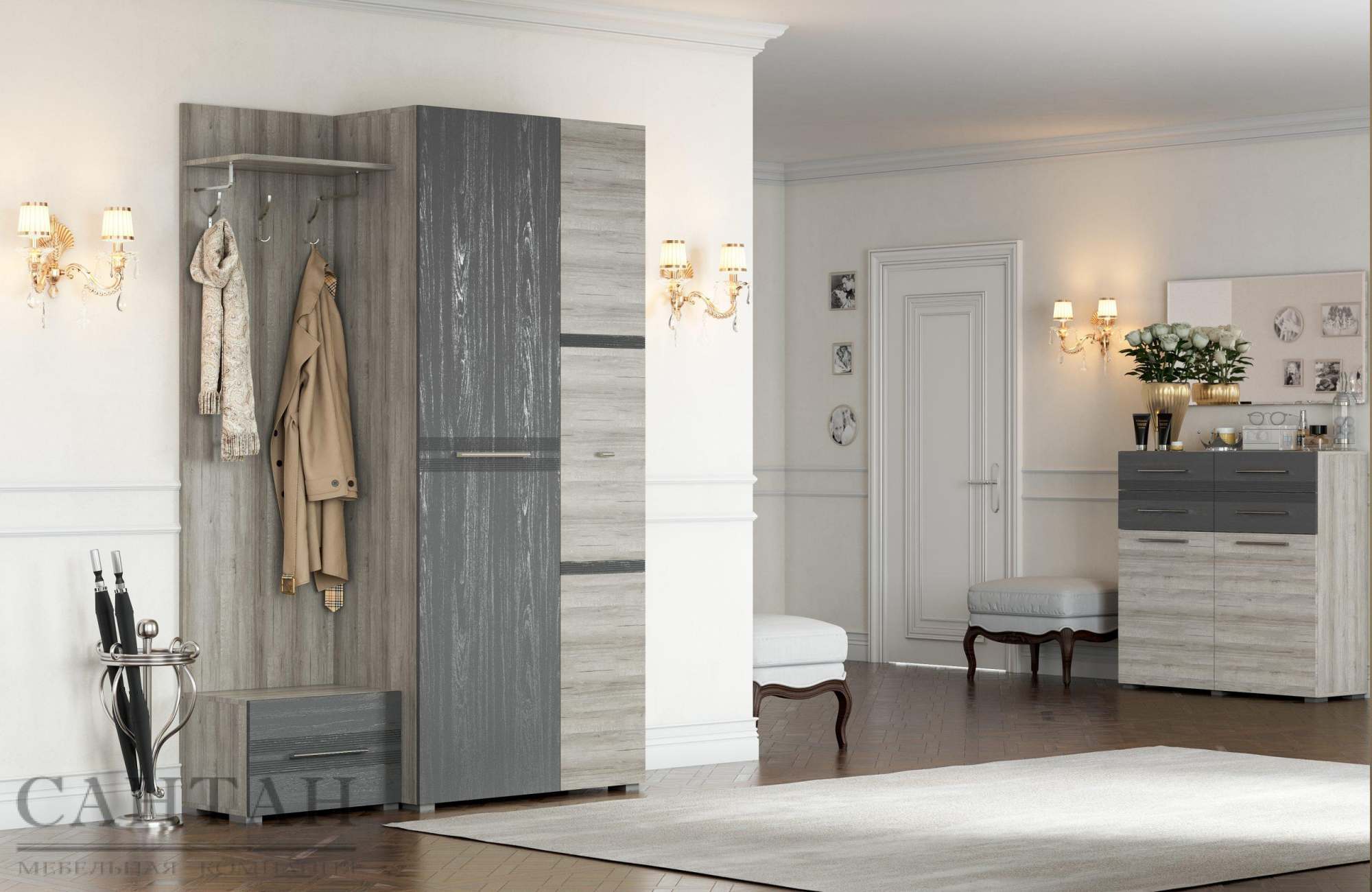 Прихожая «Панна-Котта 7» Дуб серый/Айронвуд серебро