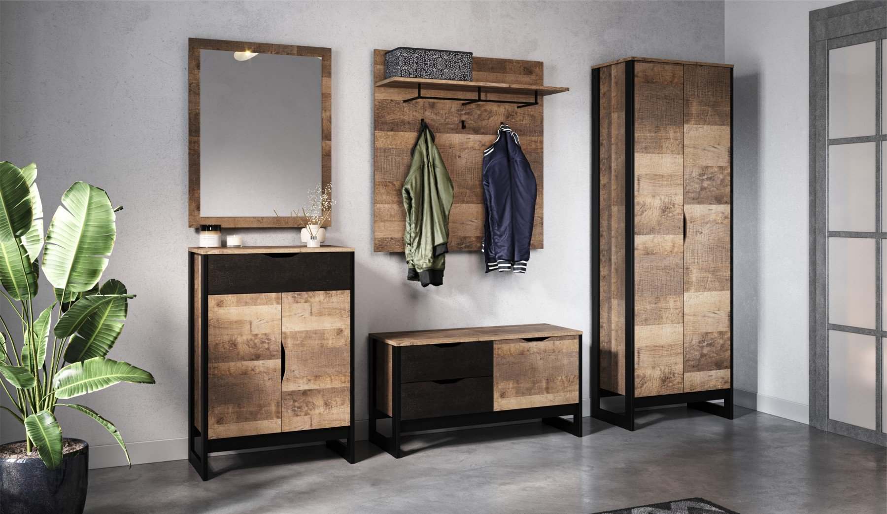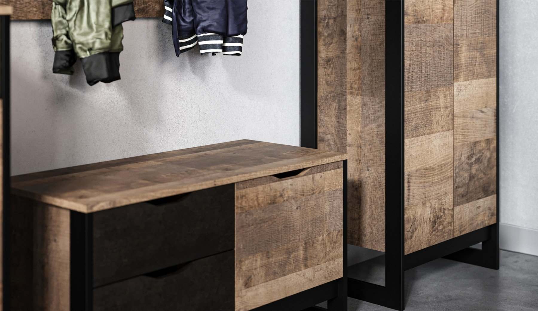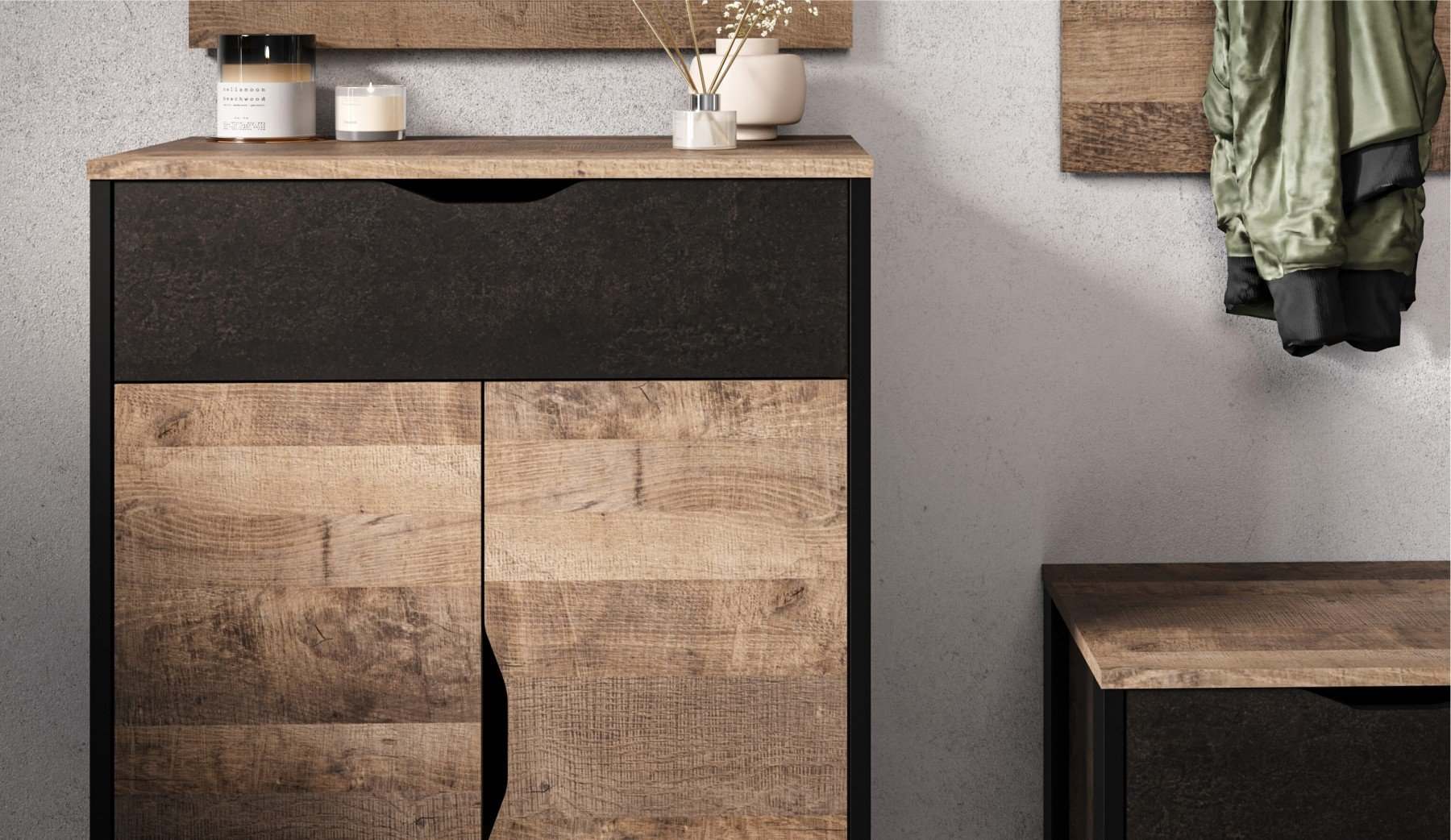 Прихожая «Стокгольм» Дуб гранж песочный/Железный камень