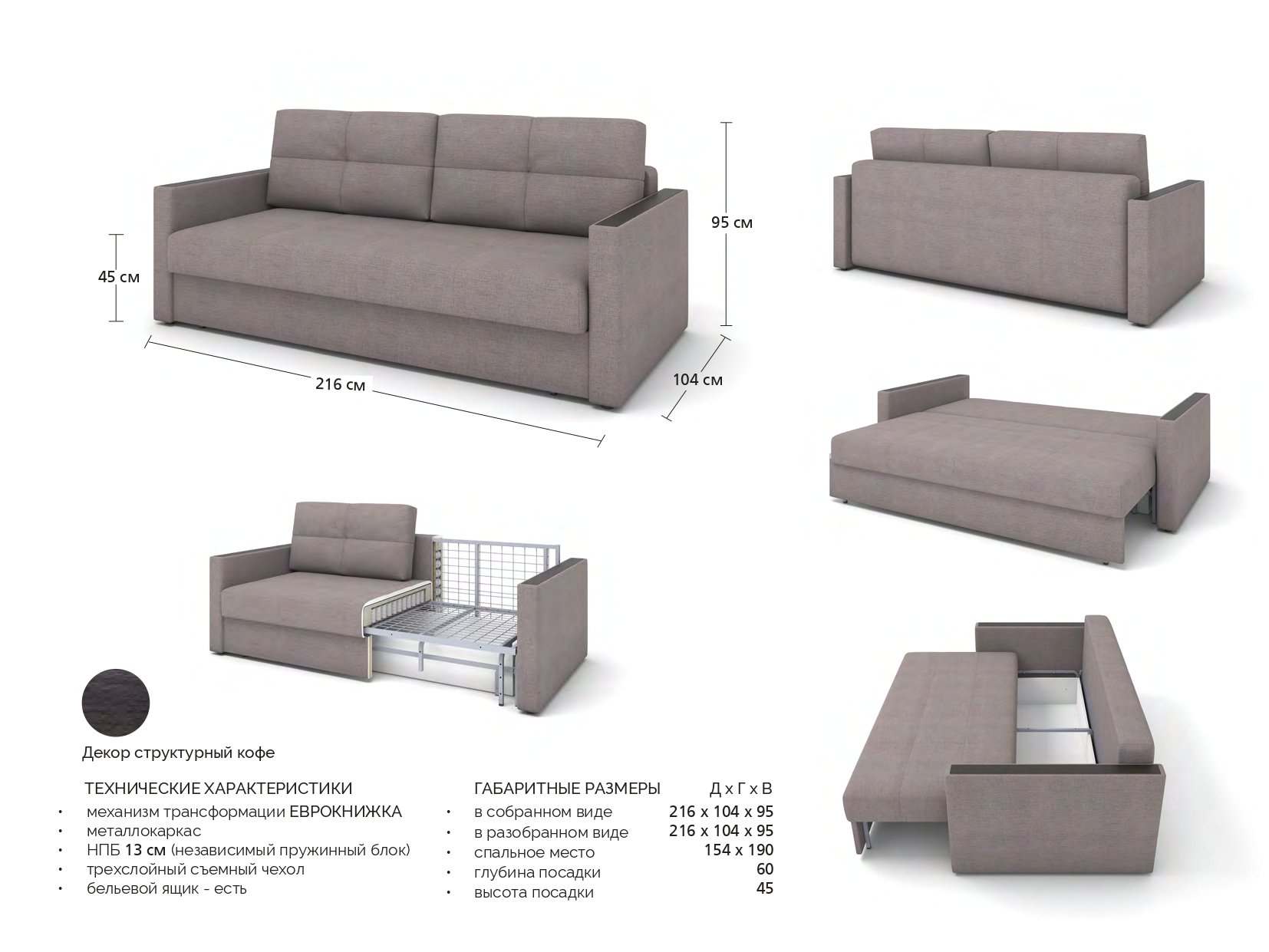 | Размер: длина дивана, см | 216 |