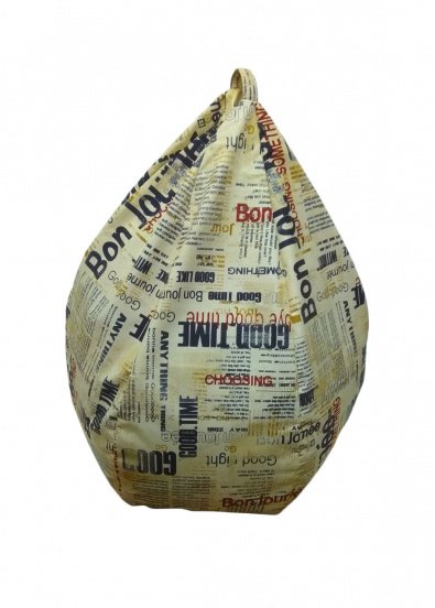 Пуф «Груша» Серый с принтом «Газета»