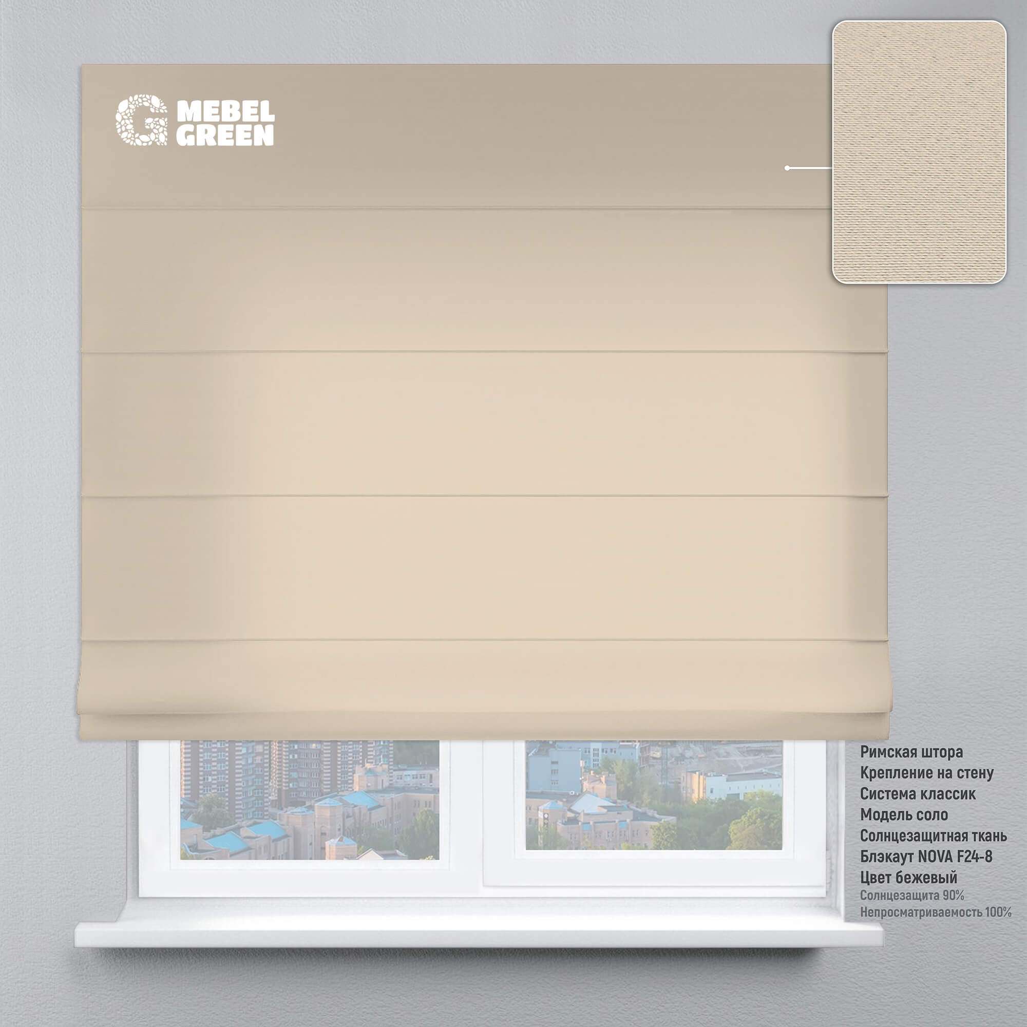 Римская штора для проема «Блэкаут Nova» бежевый