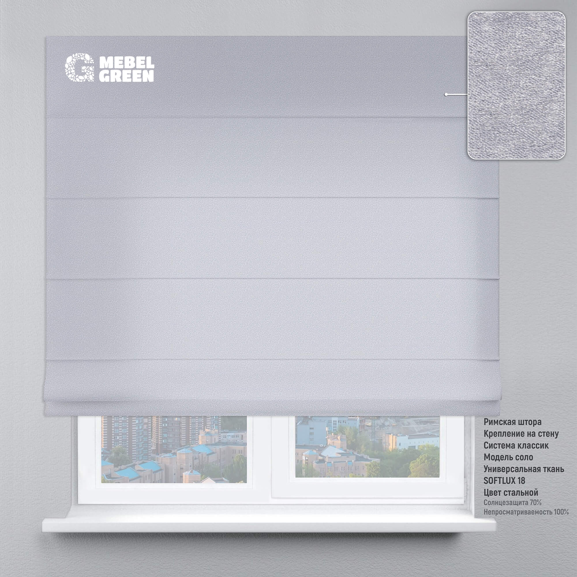 Римская штора для проема «Soft Lux» стальной