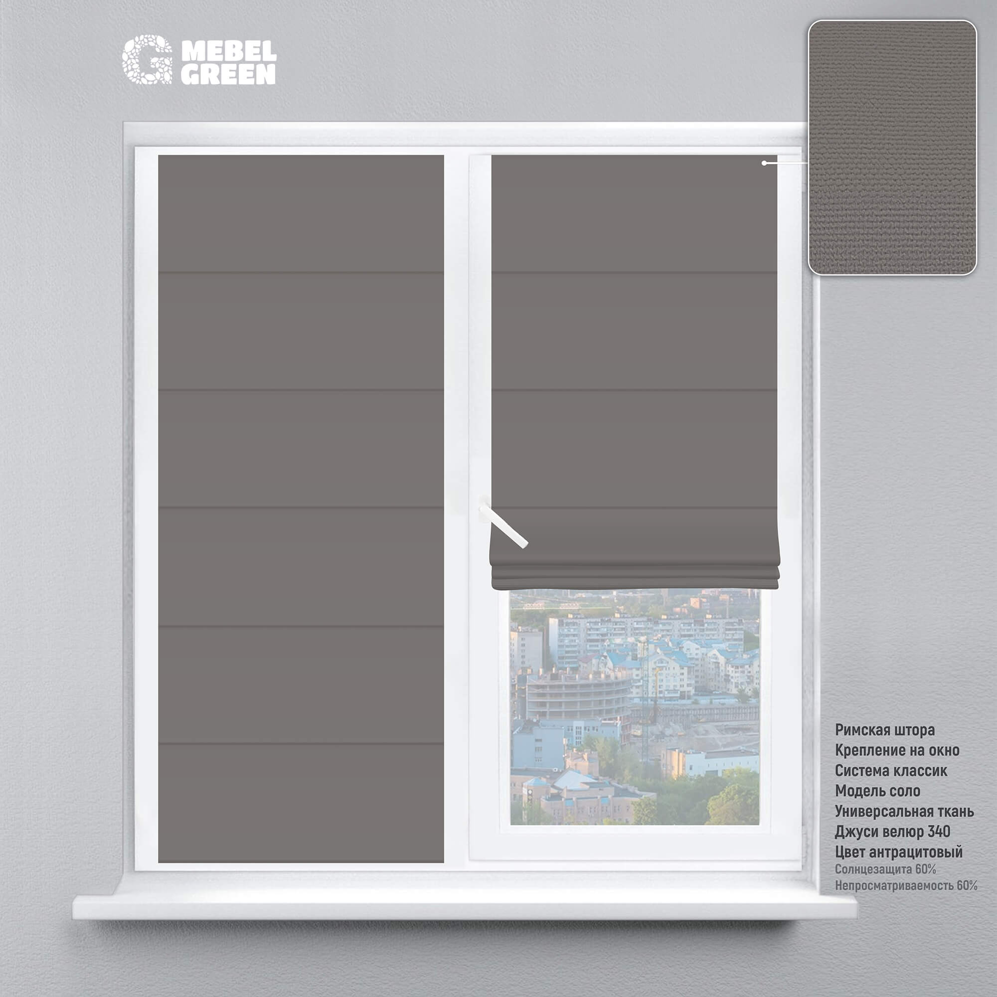 Мы доставим римская штора на окно «джуси велюр» антрацитовый по Симферополю. Доставка до склада + доставка по городу от 0 до 1 000₽, в зависимости от объема, количества и веса Вашего заказа. Подробности уточните у менеджеров.