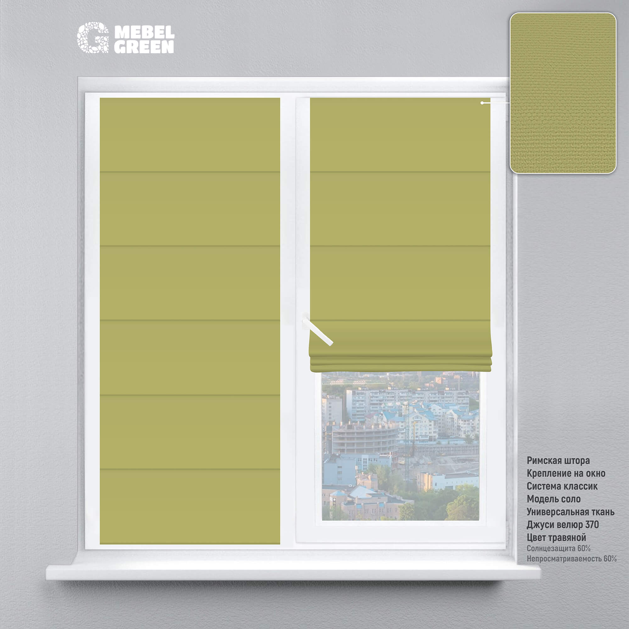 Мы доставим римская штора на окно «джуси велюр» травяной по Симферополю. Доставка до склада + доставка по городу от 0 до 1000₽, в зависимости от объема, количества и веса Вашего заказа. Подробности уточните у менеджеров.