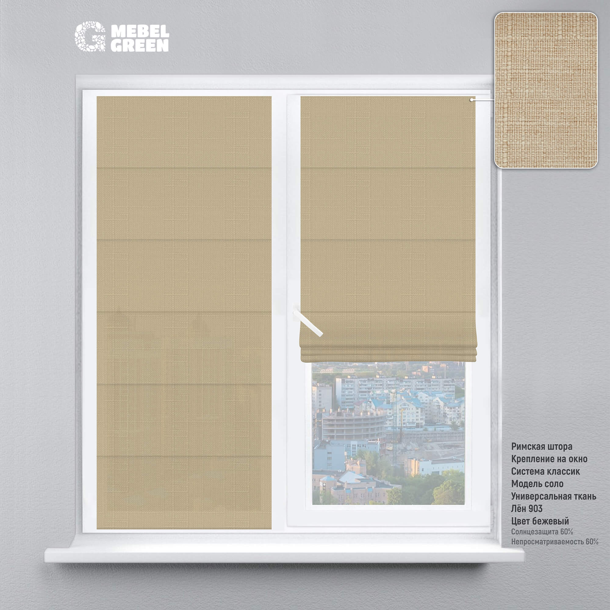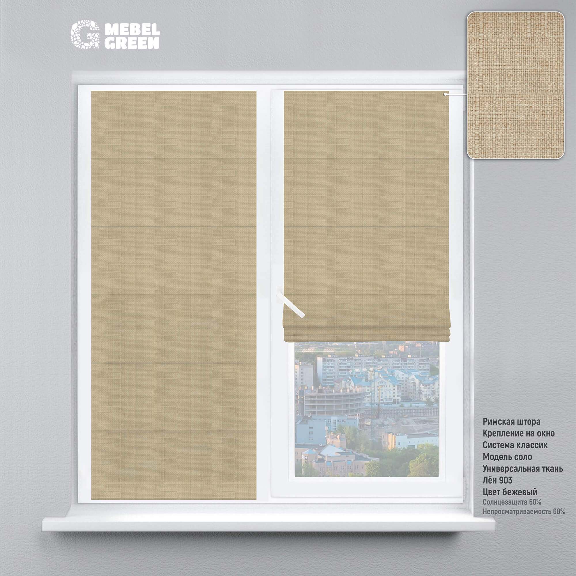 Римская штора на окно «Лён Fine» бежевый
