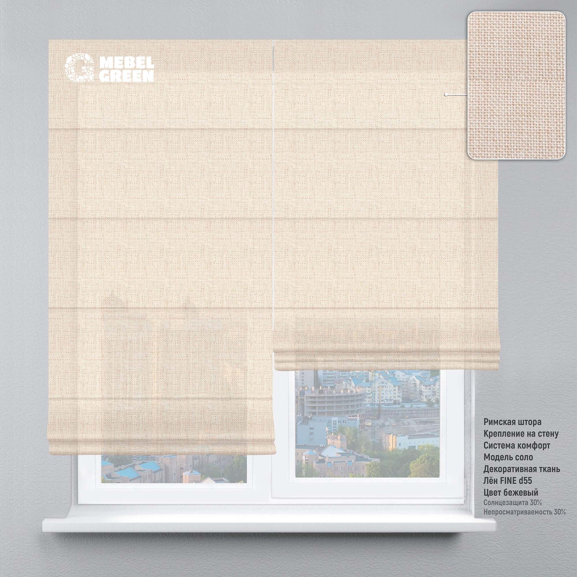 Римская штора система комфорт для проёма «Лён Fine» бежевый