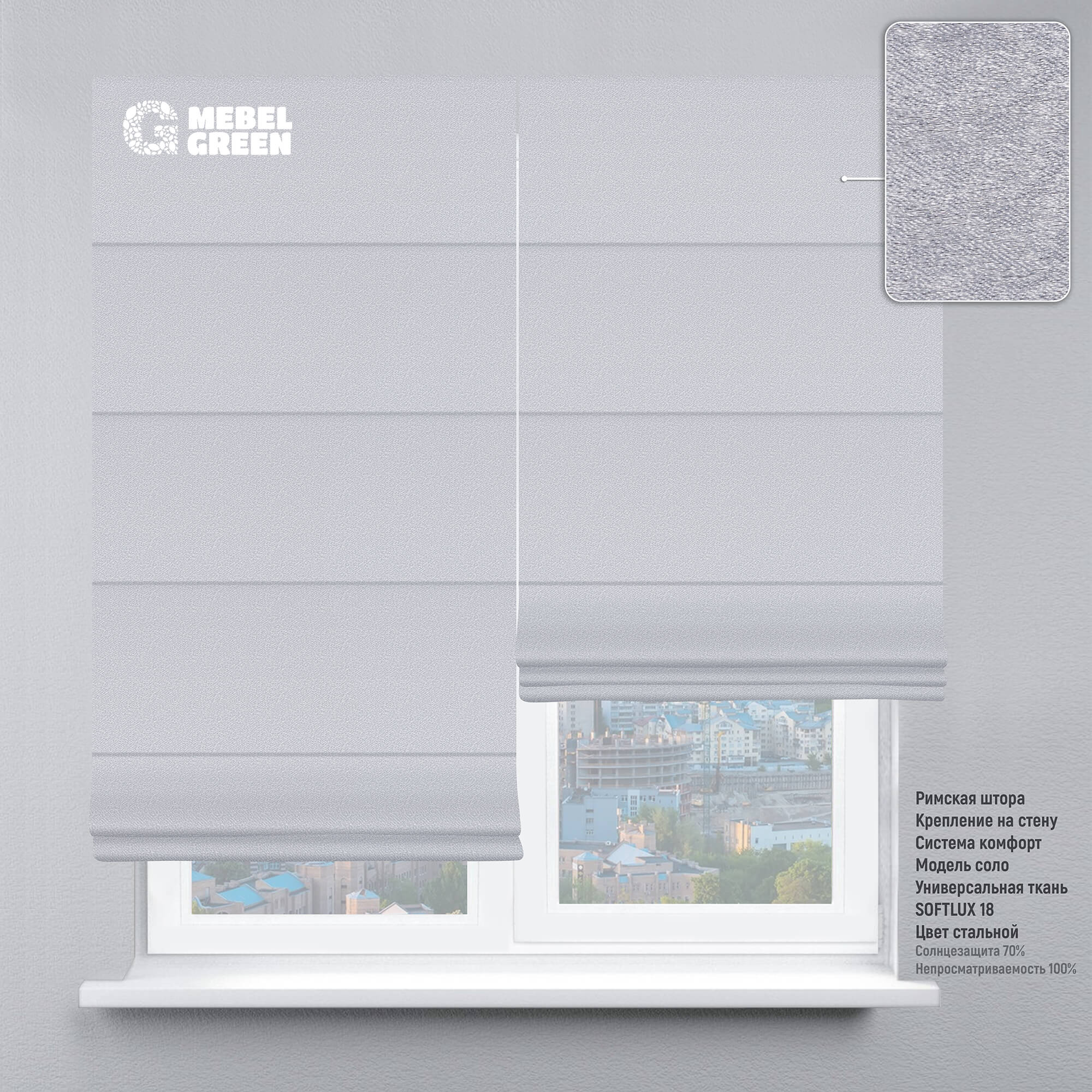 Римская штора система комфорт для проёма «Soft Lux» стальной
