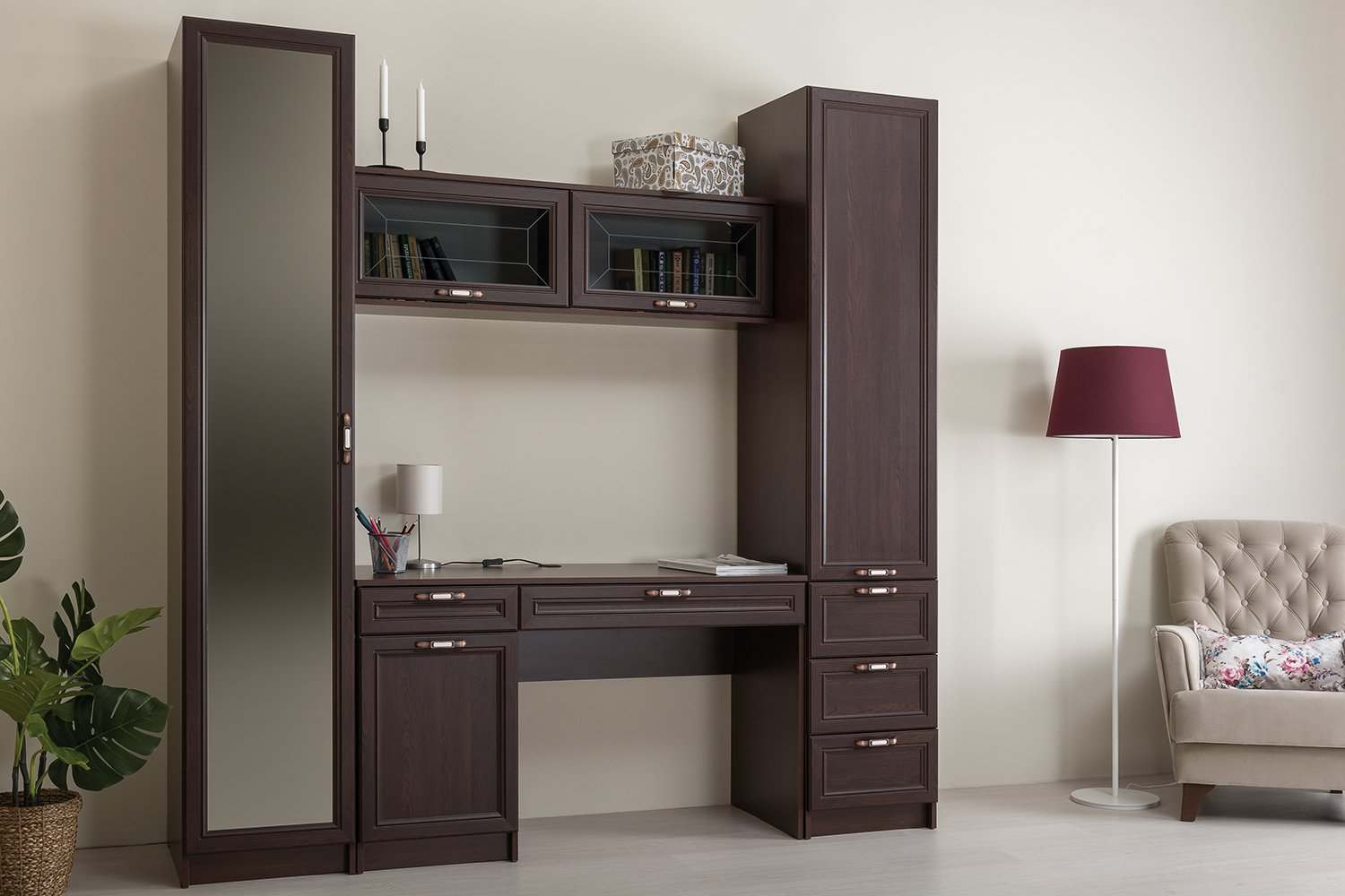 Шкаф-пенал с зеркалом 13.32 «Мадэра» Венге Каштан