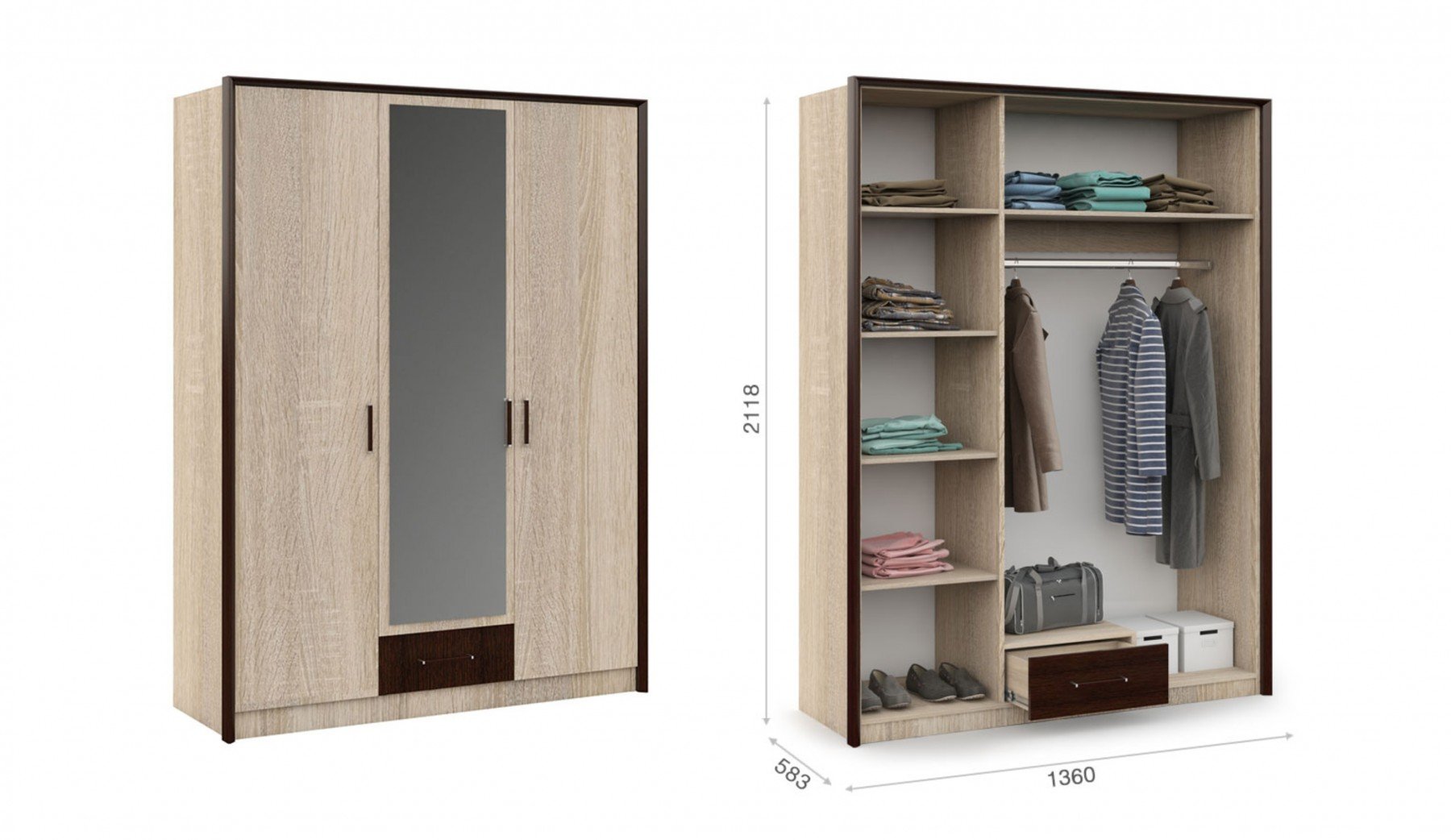 Шкаф 3-х дверный «Эшли» Венге/Дуб Сонома