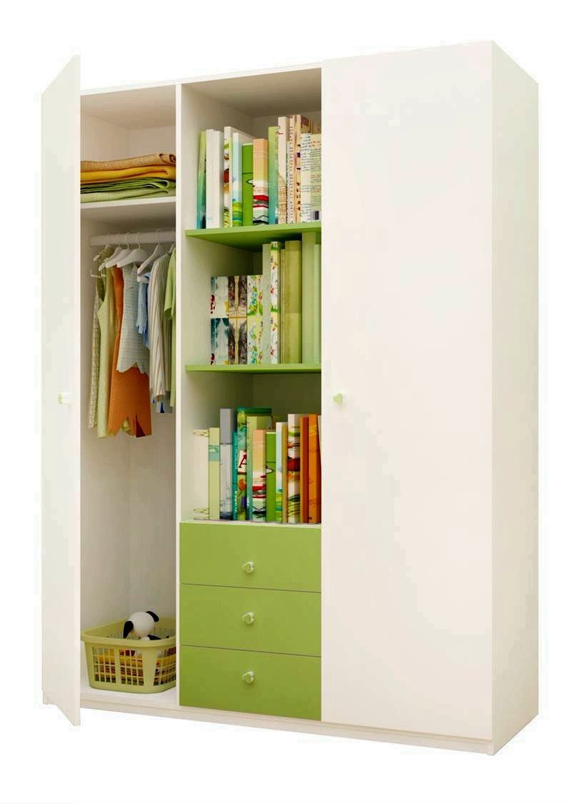 Шкаф 3-х секционный «Фея» белый-лайм