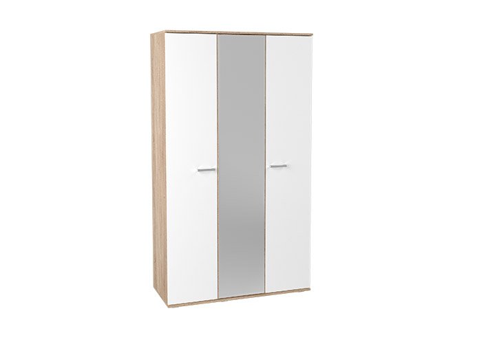 Шкаф 3х створчатый с зеркалом «Анна MDF» С3 Дуб сонома/МДФ Белый глянец