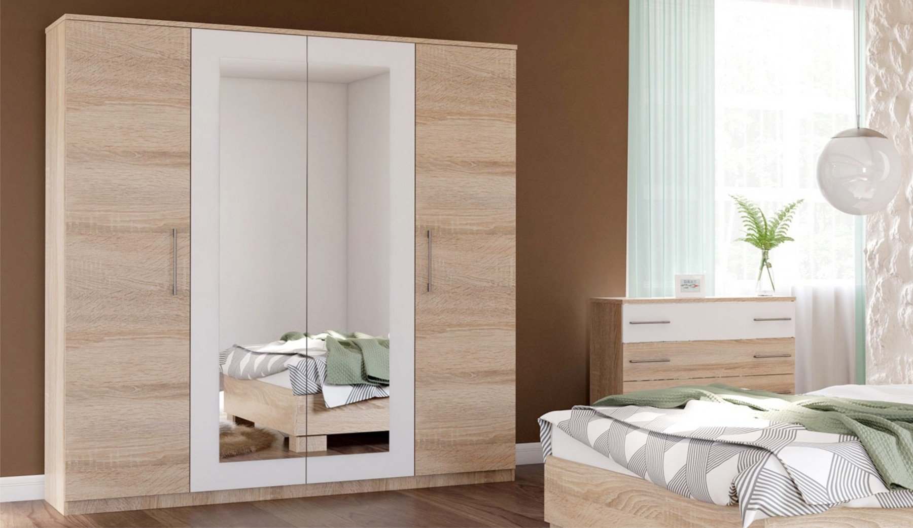 Шкаф 4-х дверный «Аврора» Сонома/Белый