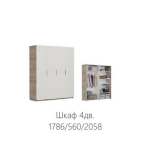 Шкаф 4-х дверный ДДДД «Джулия» Крафт серый/Белый глянец