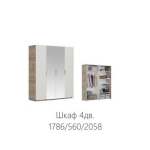 Шкаф 4-х дверный ДЗЗД «Джулия» Крафт серый/Белый глянец