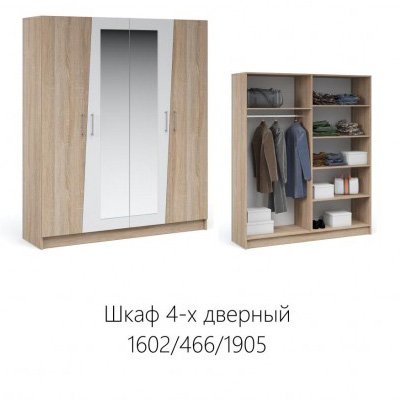 Мы доставим шкаф 4-х дверный с зеркалами «антария» дуб сонома/белый по Симферополю. Доставка до склада + доставка по городу от 0 до 1 000₽, в зависимости от объема, количества и веса Вашего заказа. Подробности уточните у менеджеров.