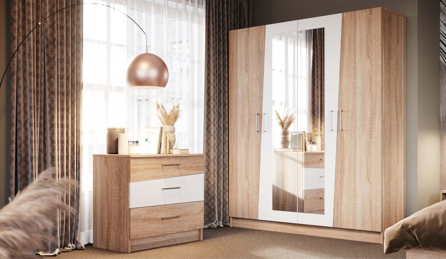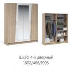Шкаф 4-х дверный с зеркалами «Антария» Дуб сонома/Белый