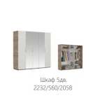 Шкаф 5-ти дверный ДЗЗЗД «Джулия» Крафт серый/Белый глянец