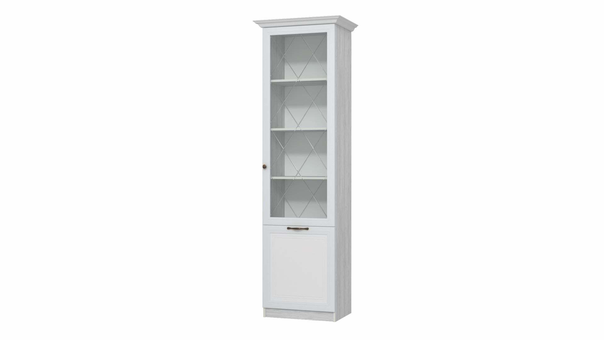 Шкаф 550 со стеклом ГМ-3 «Гармония 7» МДФ Белое дерево/Холст белый/Рамух