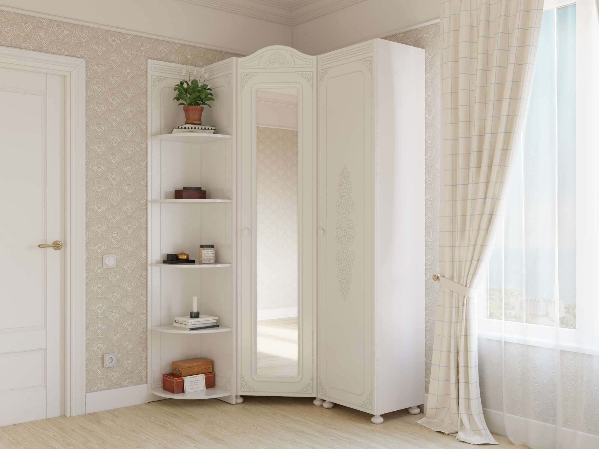 Шкаф «Ассоль» АС-53К с зеркалом (левый с короной) белое дерево