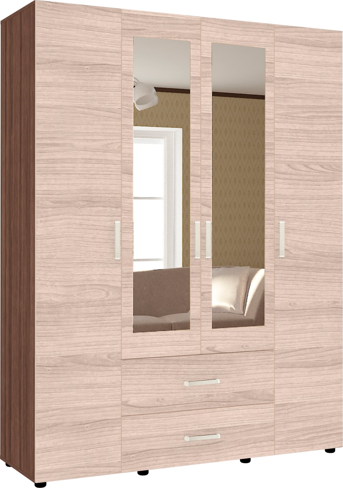 Шкаф четырехстворчатый ШК-020 «Эва» Ясень Шимо темный/Шимо светлый