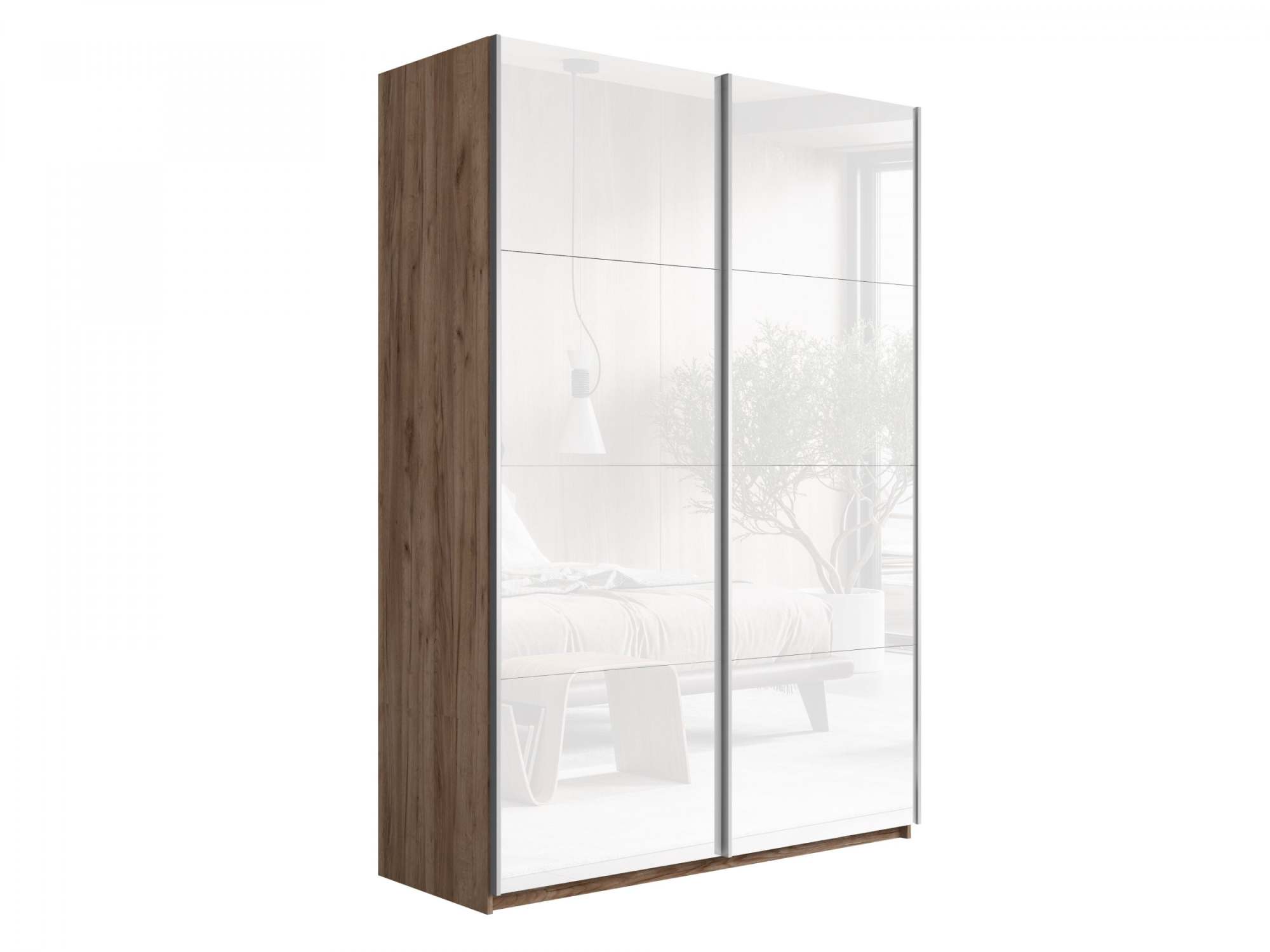 Шкаф-купе 2-х дверный «Прайм» Белое стекло/Белое стекло, Крафт Табачный
