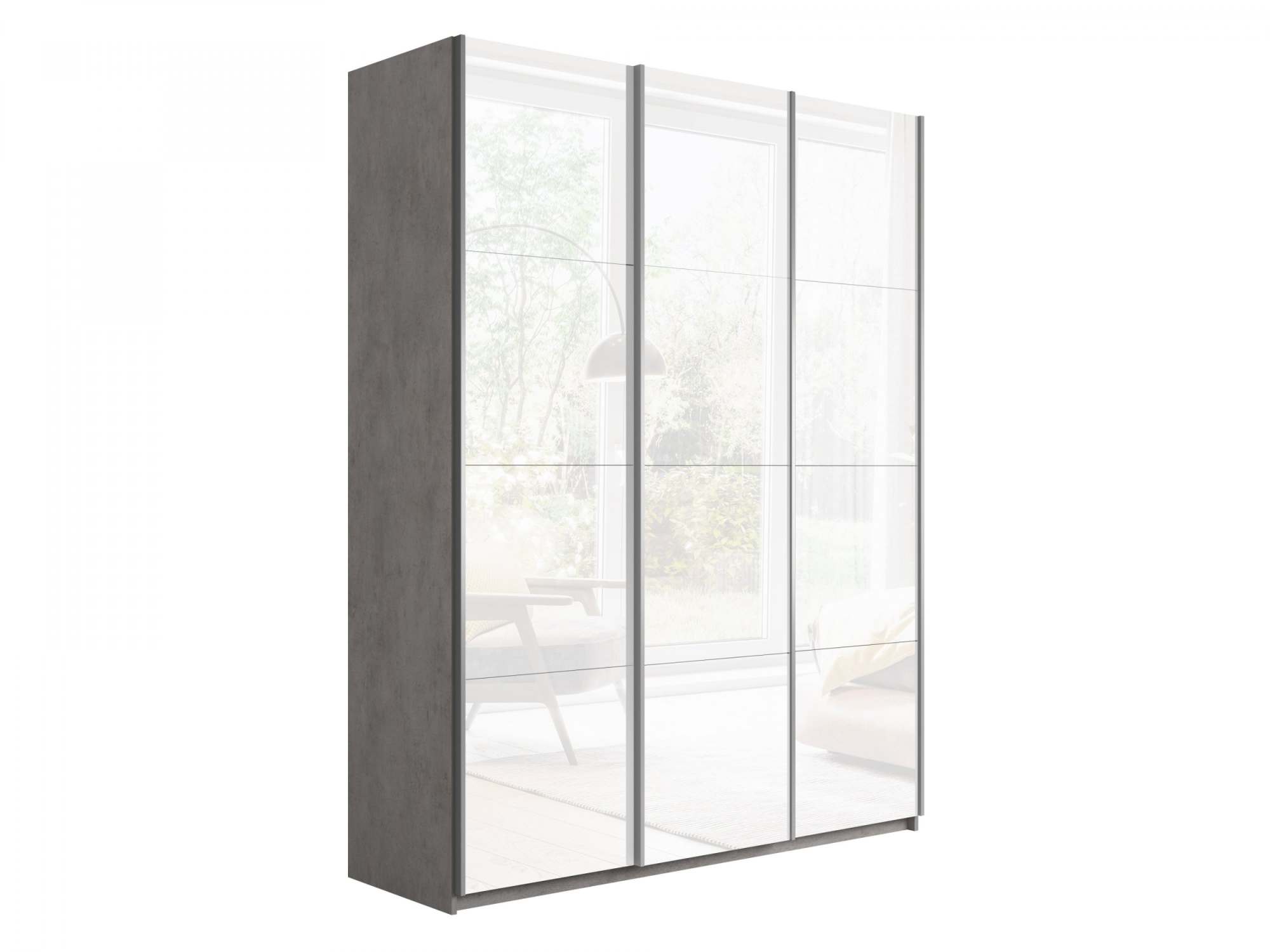Шкаф-купе 3-х дверный «Прайм» 3 двери Белое стекло, Бетон