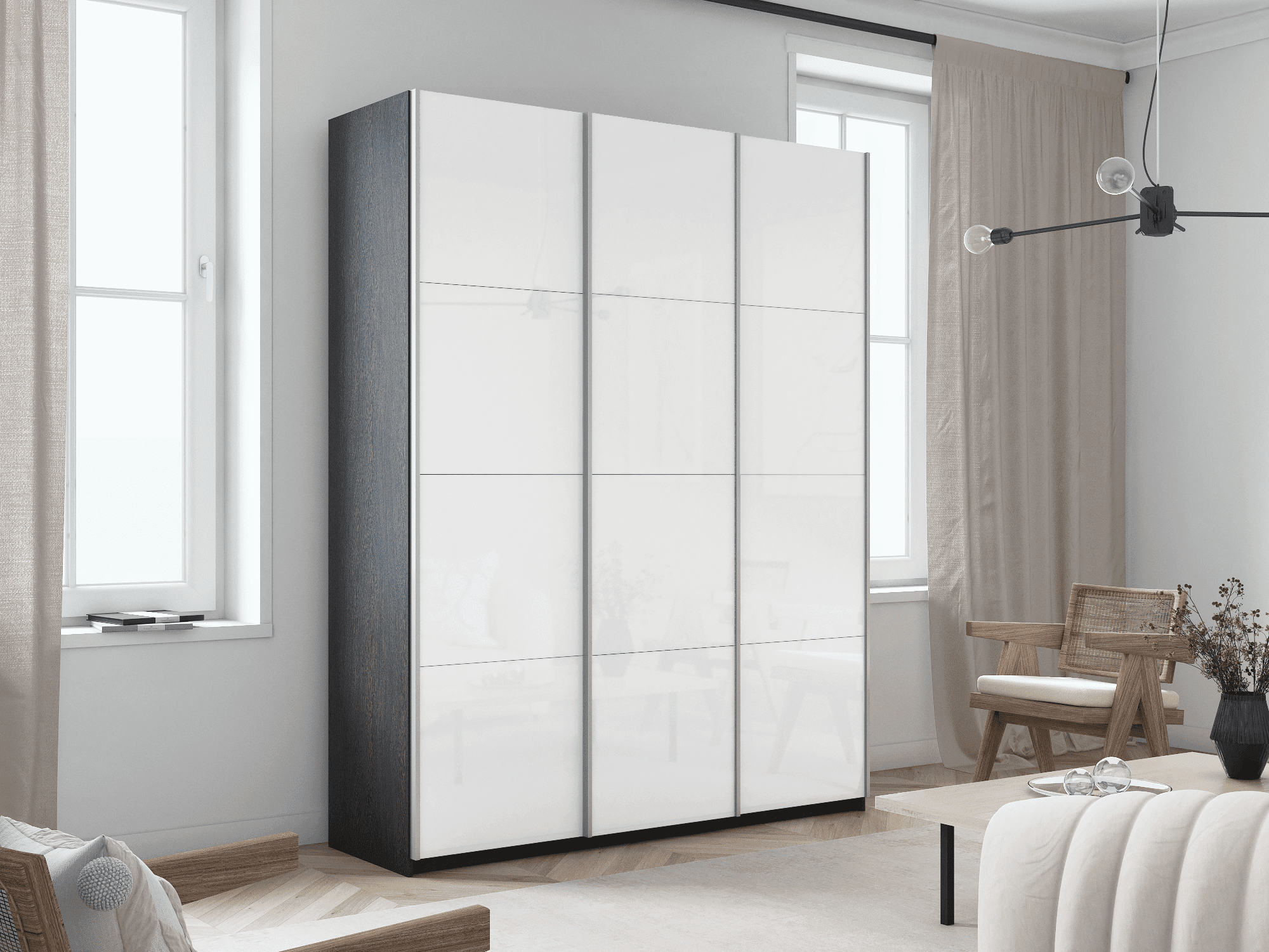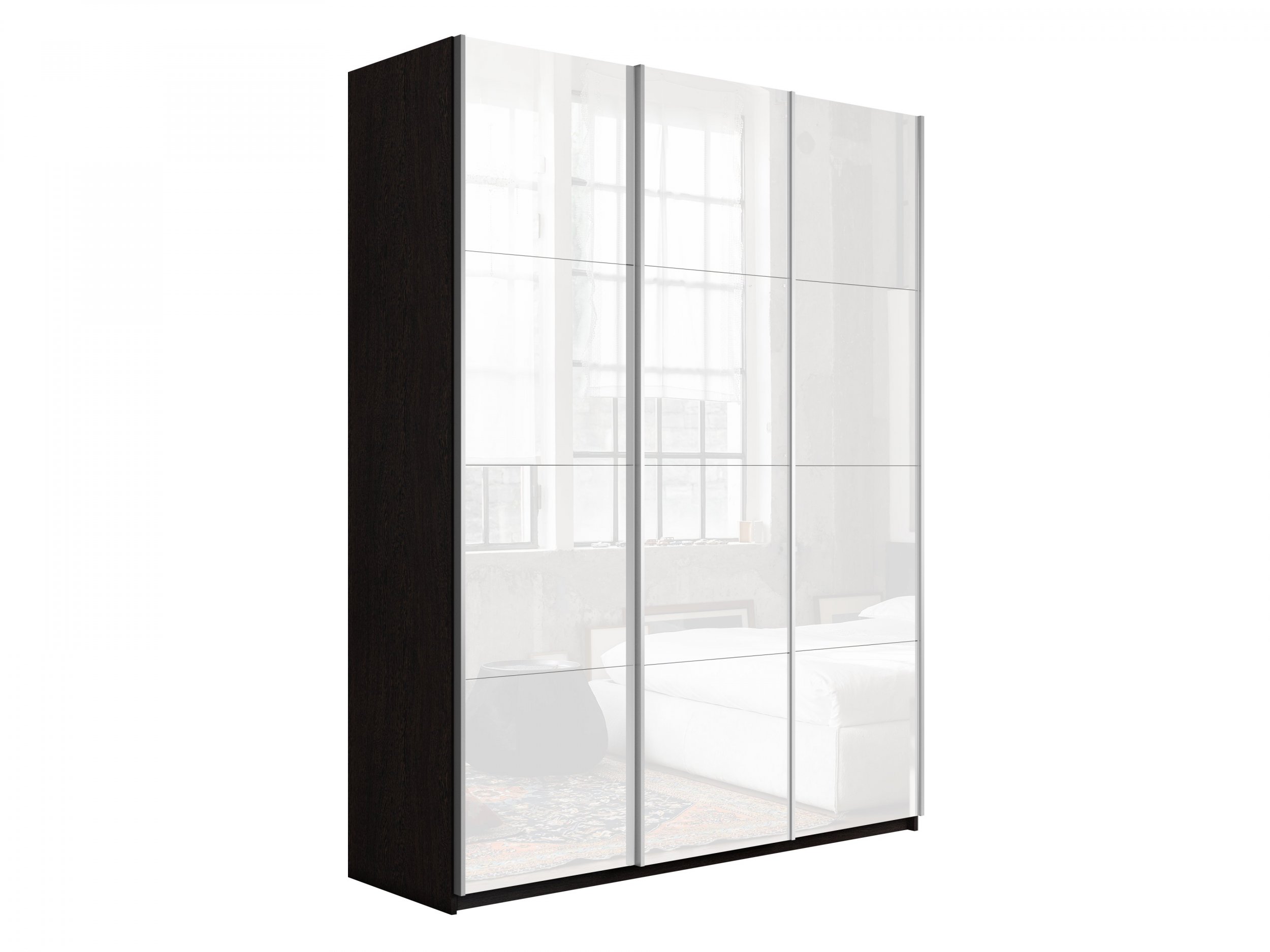 Шкаф-купе 3-х дверный «Прайм» 3 двери Белое стекло, Венге