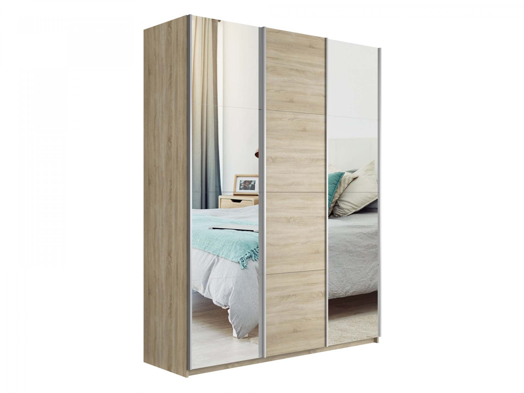 Шкаф-купе 3-х дверный «Прайм» Зеркало/ДСП/Зеркало Сонома