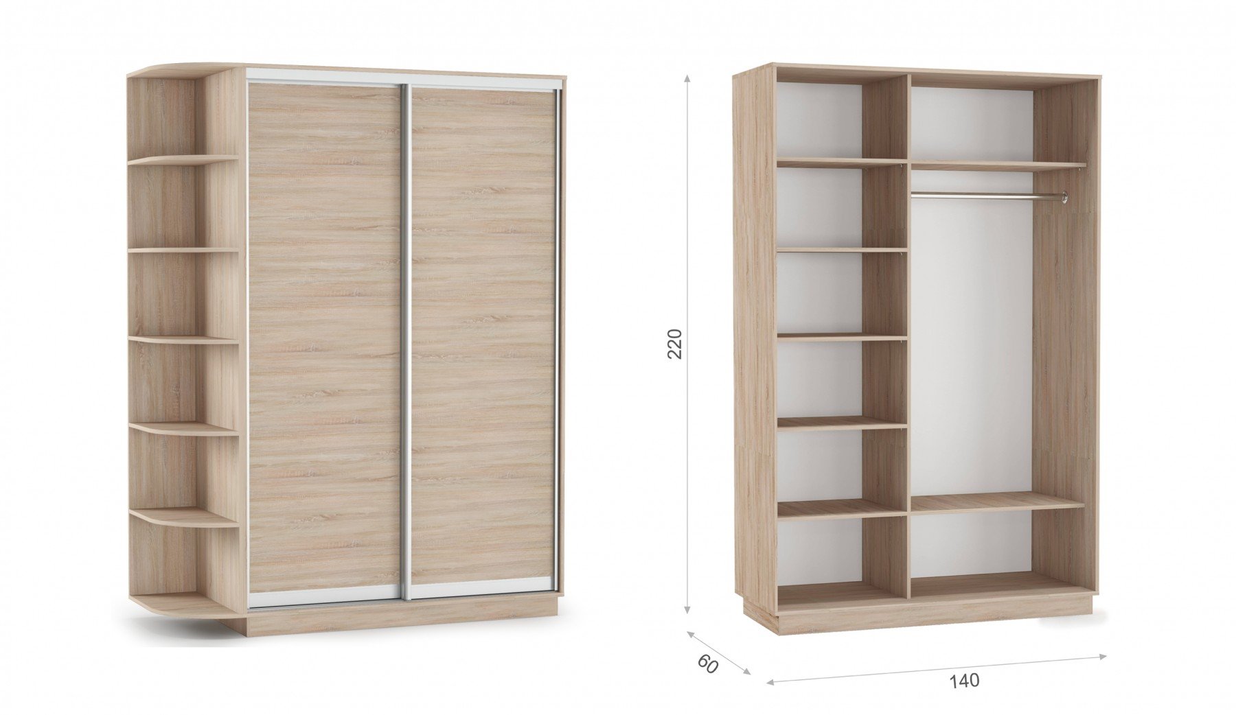 Шкаф-купе двухдверный 140х220 ДД «Тетрис» Дуб сонома