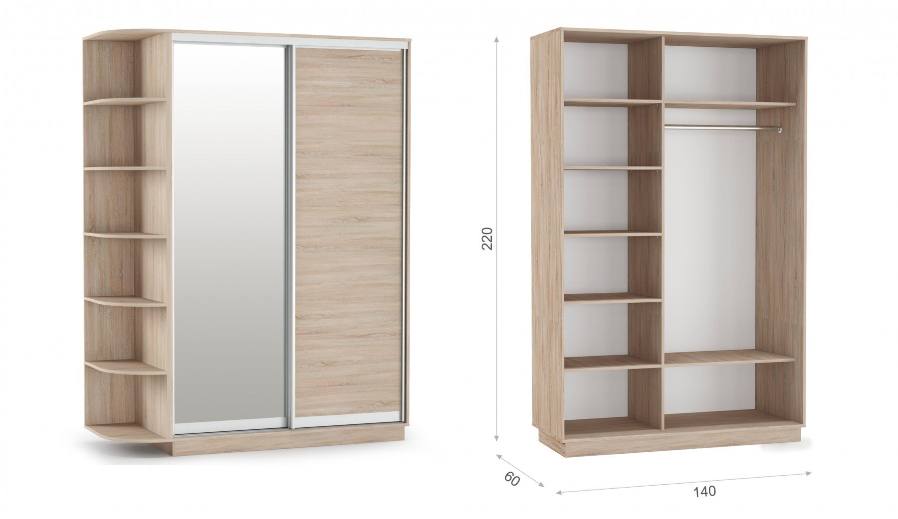 Шкаф-купе двухдверный 140х220 ДЗ «Тетрис» Дуб сонома