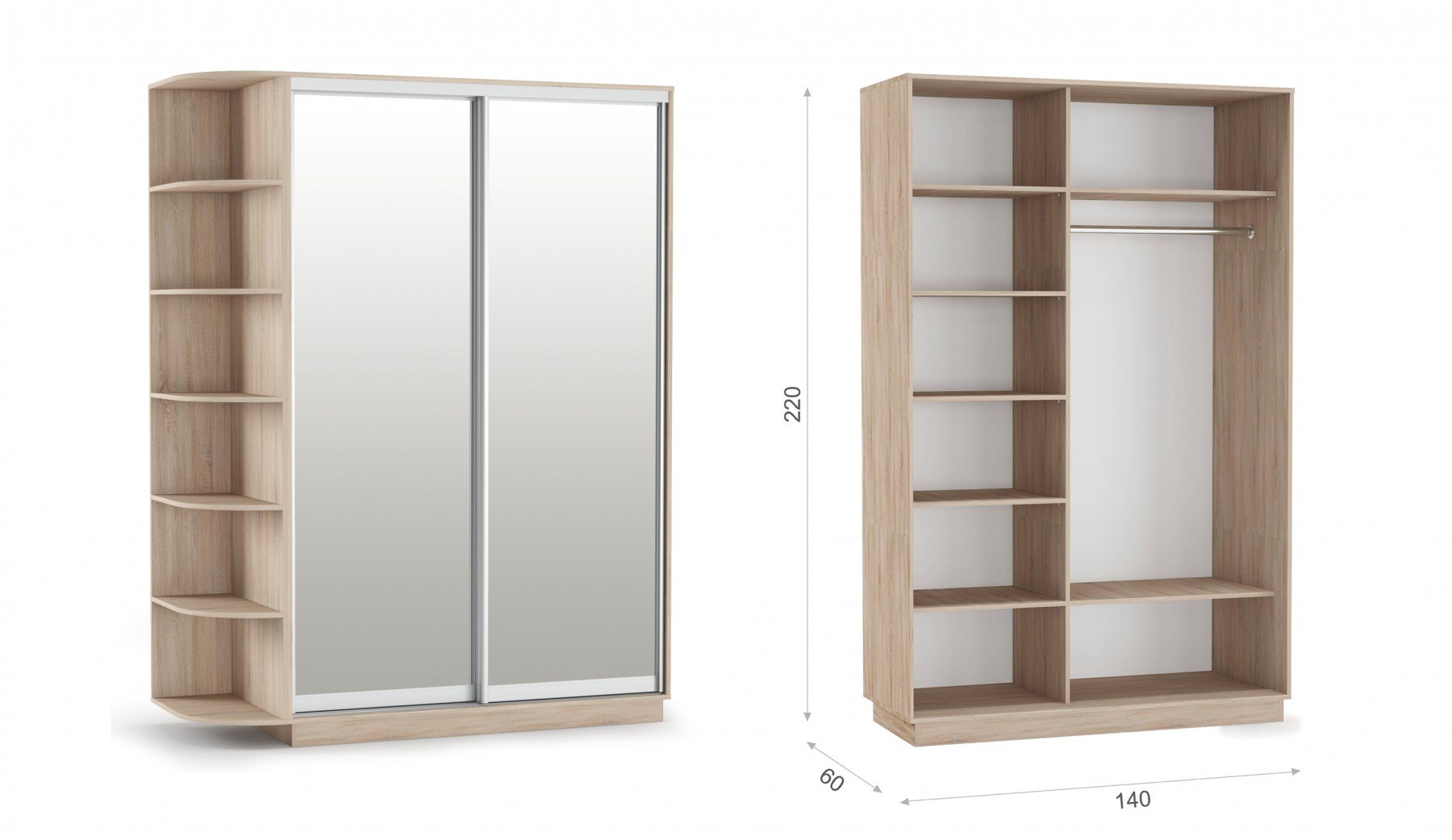Шкаф-купе двухдверный 140х220 ЗЗ «Тетрис» Дуб сонома