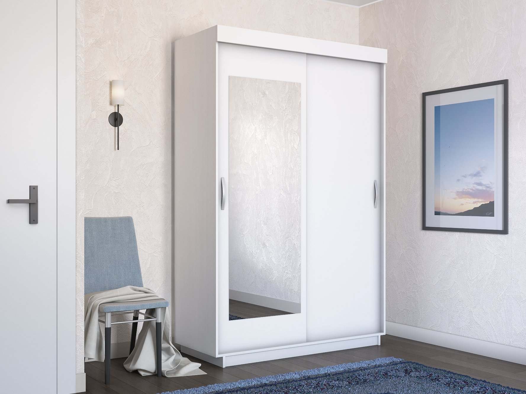 Шкаф-купе двухдверный «Лайт» ДСП Белый снег/зеркало