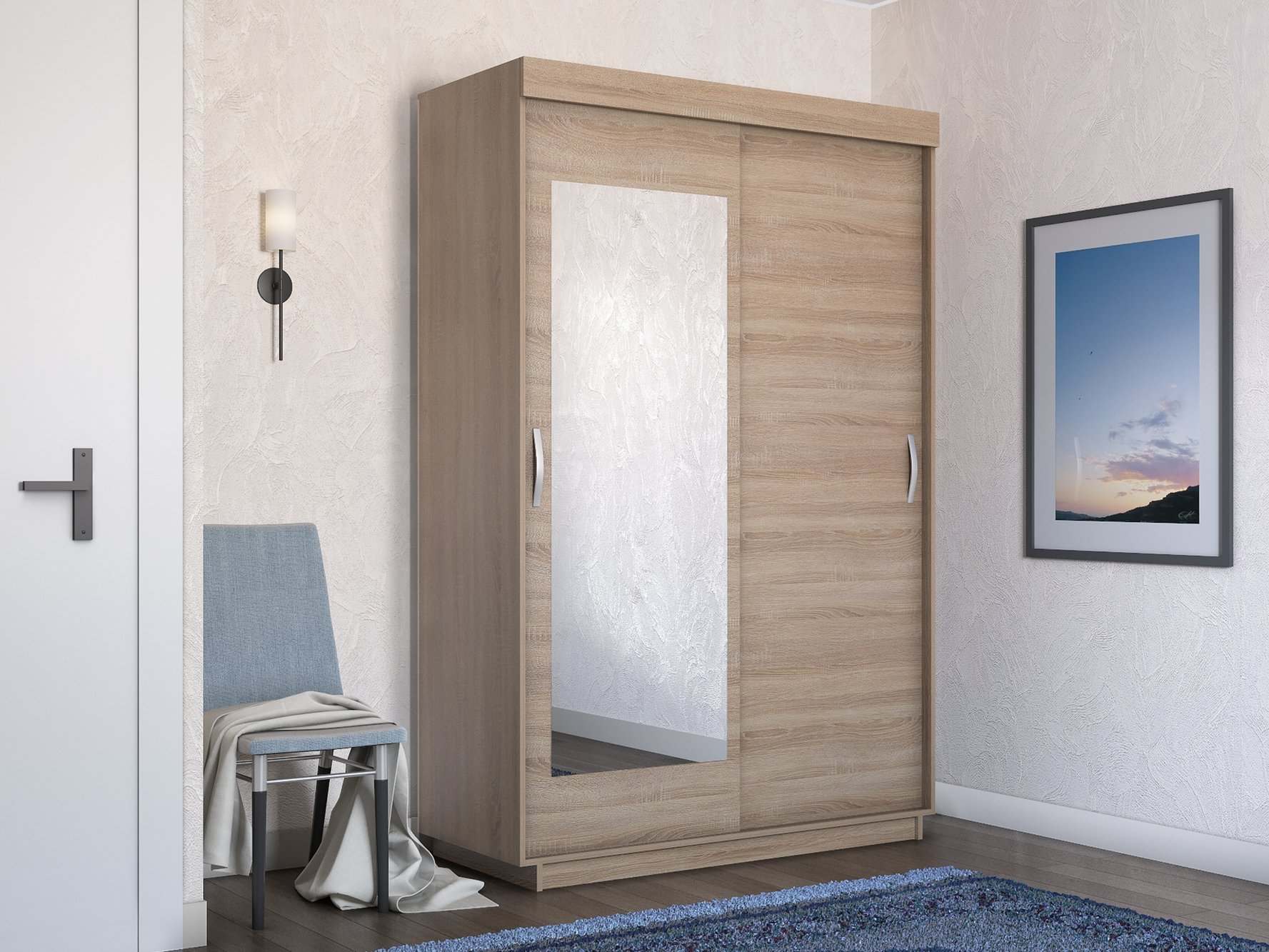 Шкаф-купе двухдверный «Лайт» ДСП Сонома/зеркало