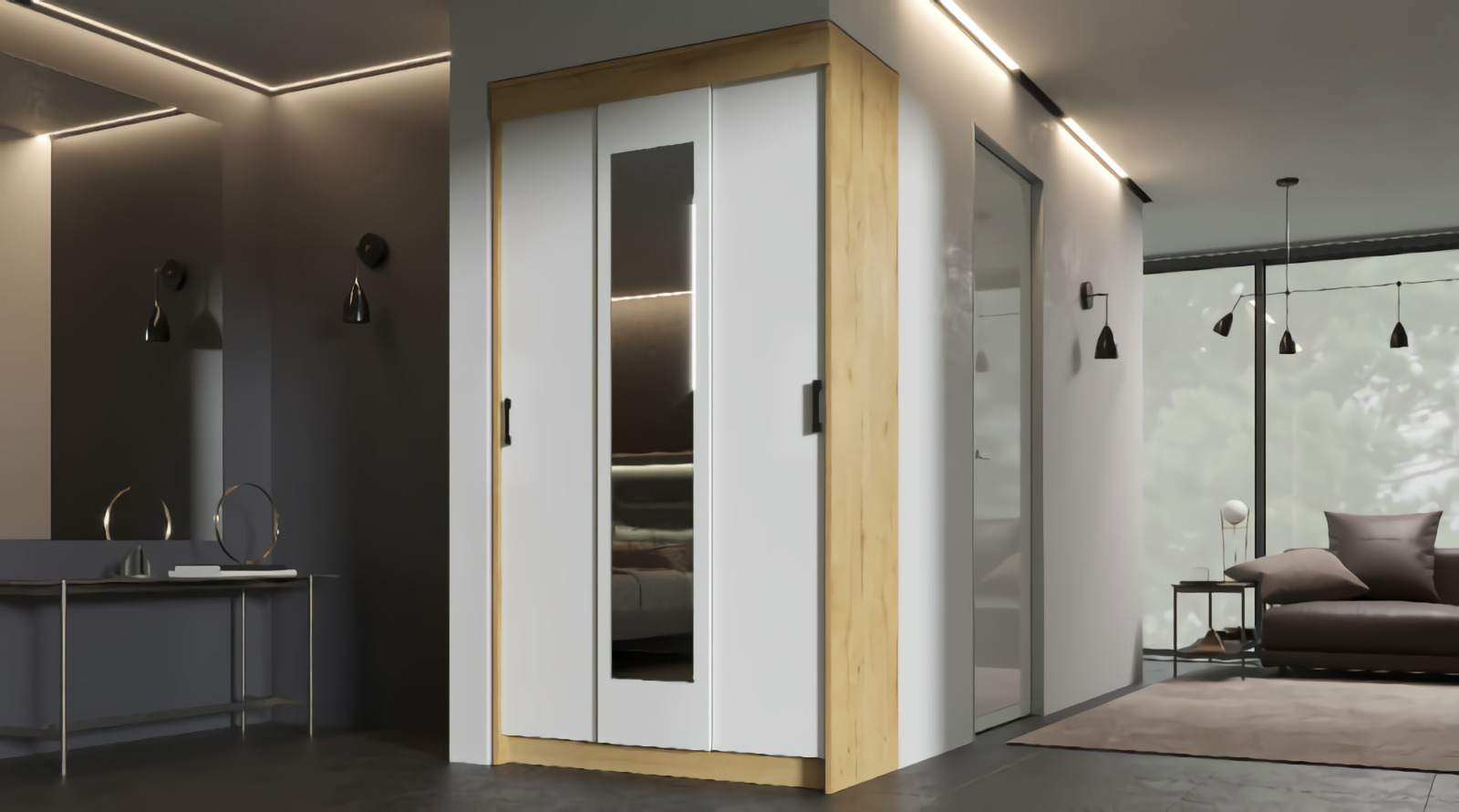 Шкаф-купе «Эко» Дуб Вотан/Белый гладкий