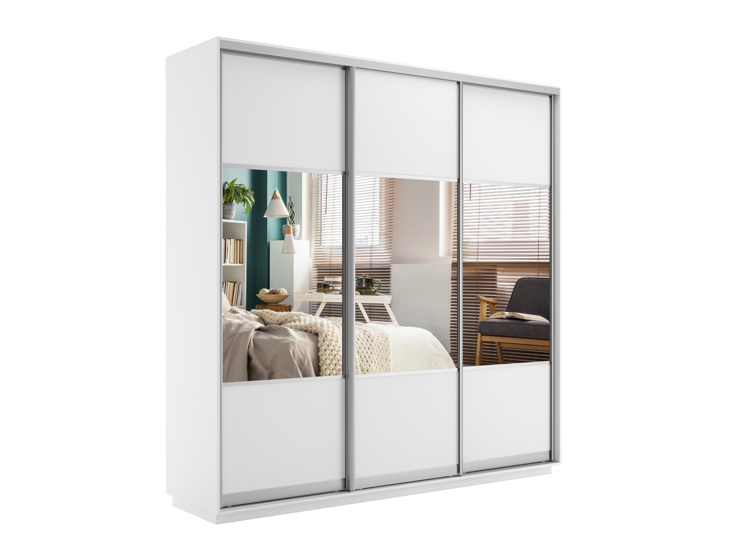 Шкаф-купе «Экспресс Трио» Комби ДСП/Зеркало Белый снег