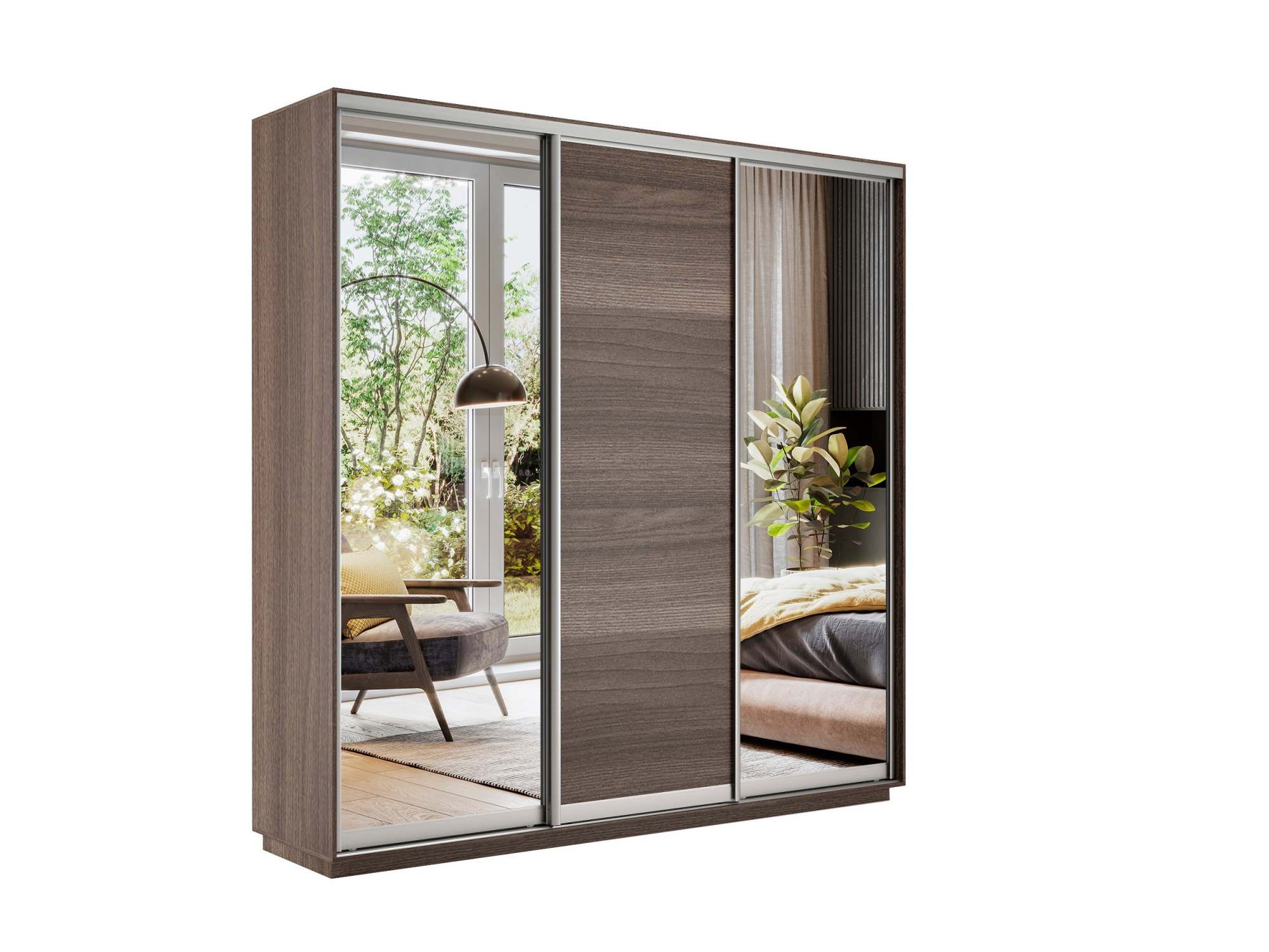 Шкаф-купе «Экспресс Трио» Медиум 2 Зеркало/ДСП/Зеркало Шимо темный