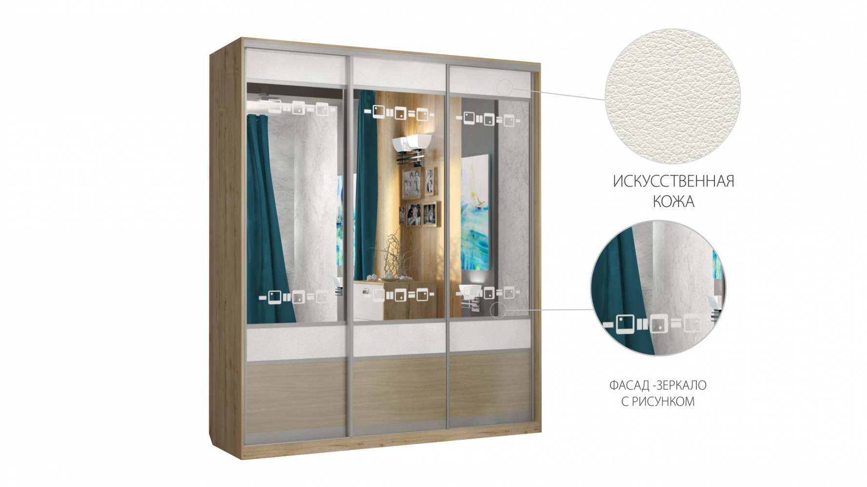 Шкаф-купе «Фиджи» Дуб скальный/Искусственная кожа Белая