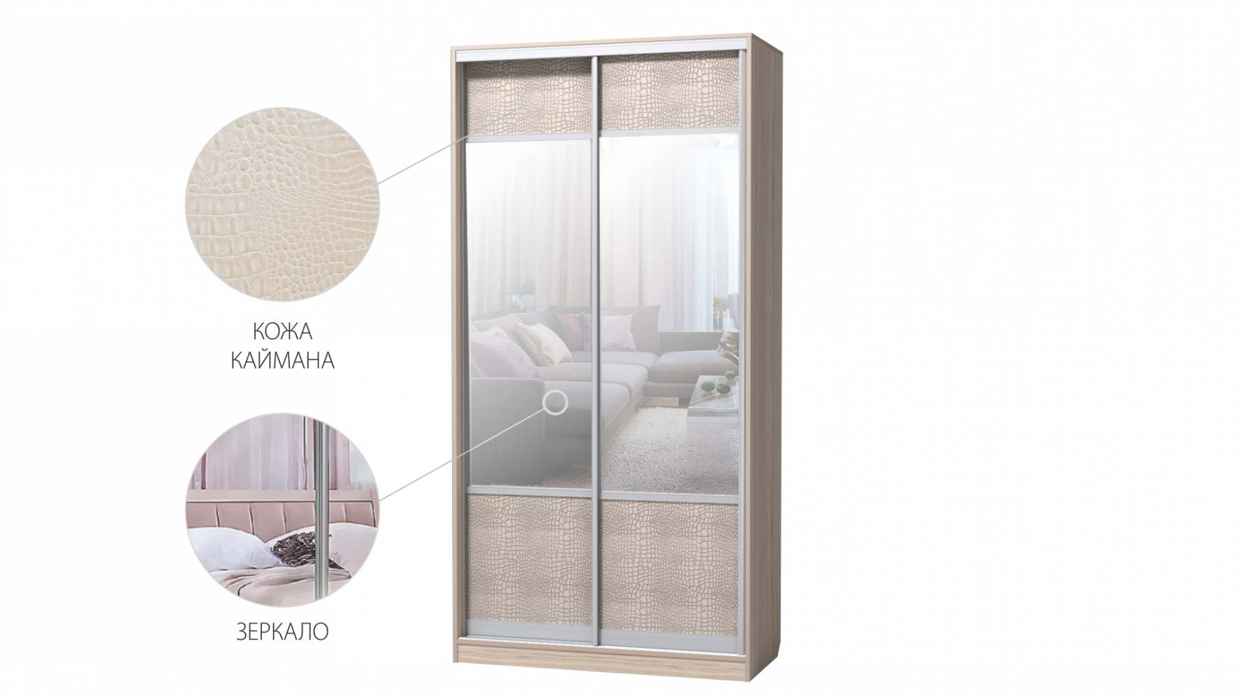Шкаф-купе «Фортуна» Кожа крокодила светлая/Туя светлая