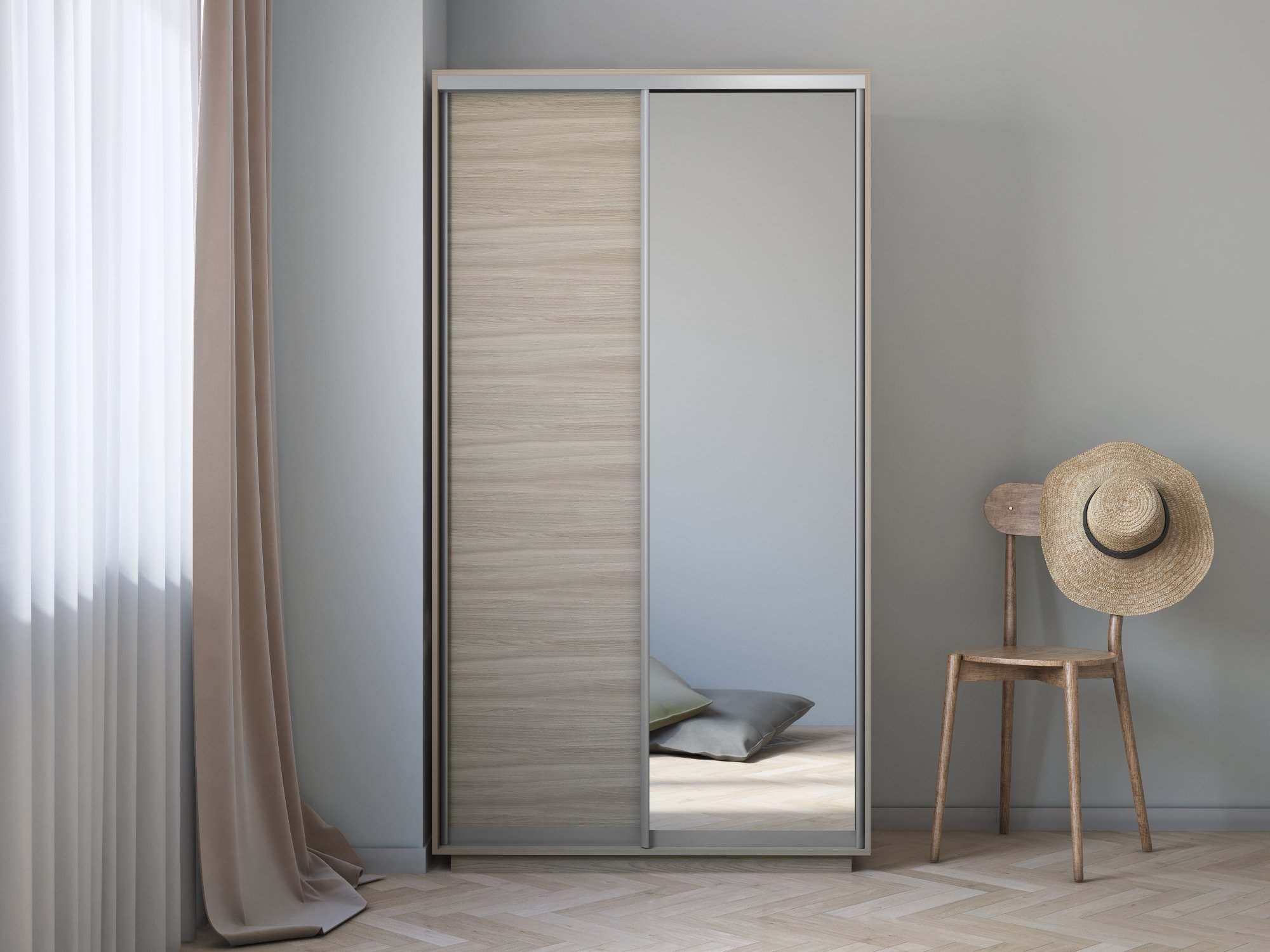 Шкаф-купе «Экспресс Хит» Медиум ДСП/Зеркало Ясень Шимо светлый