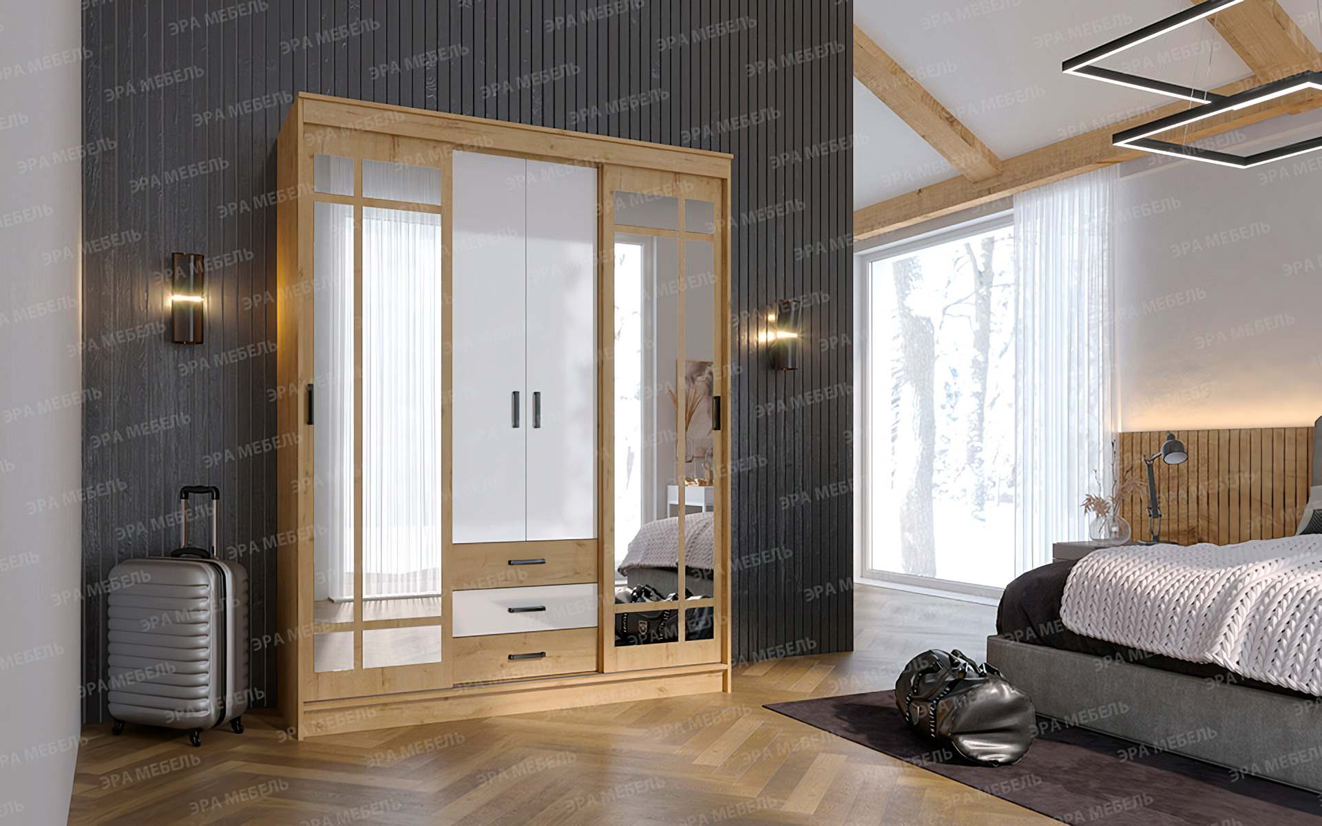 Шкаф-купе «Лорд» Дуб Вотан/Белый глянец