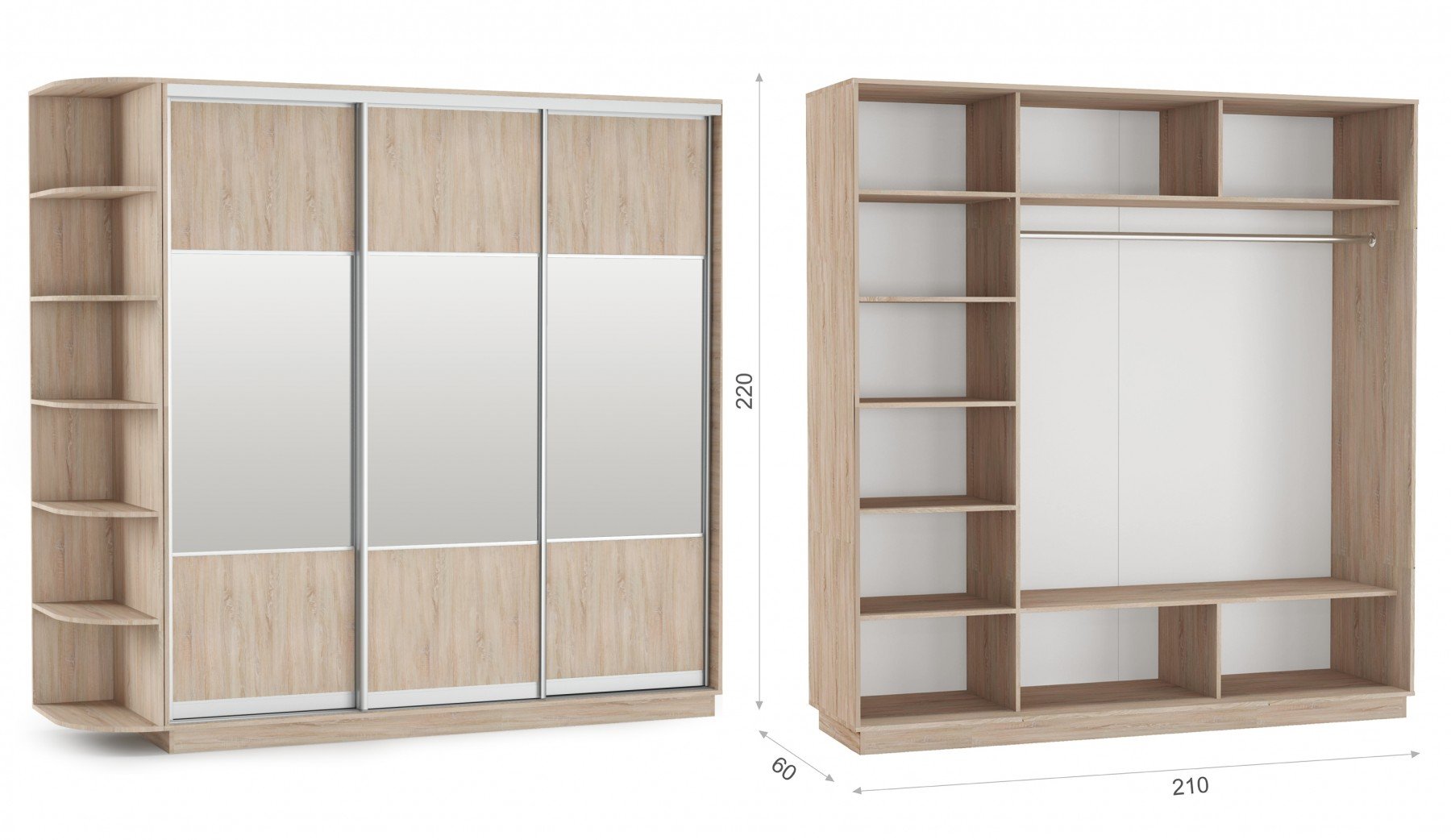 Шкаф-купе трехдверный 210х220 ККК «Тетрис» Дуб сонома