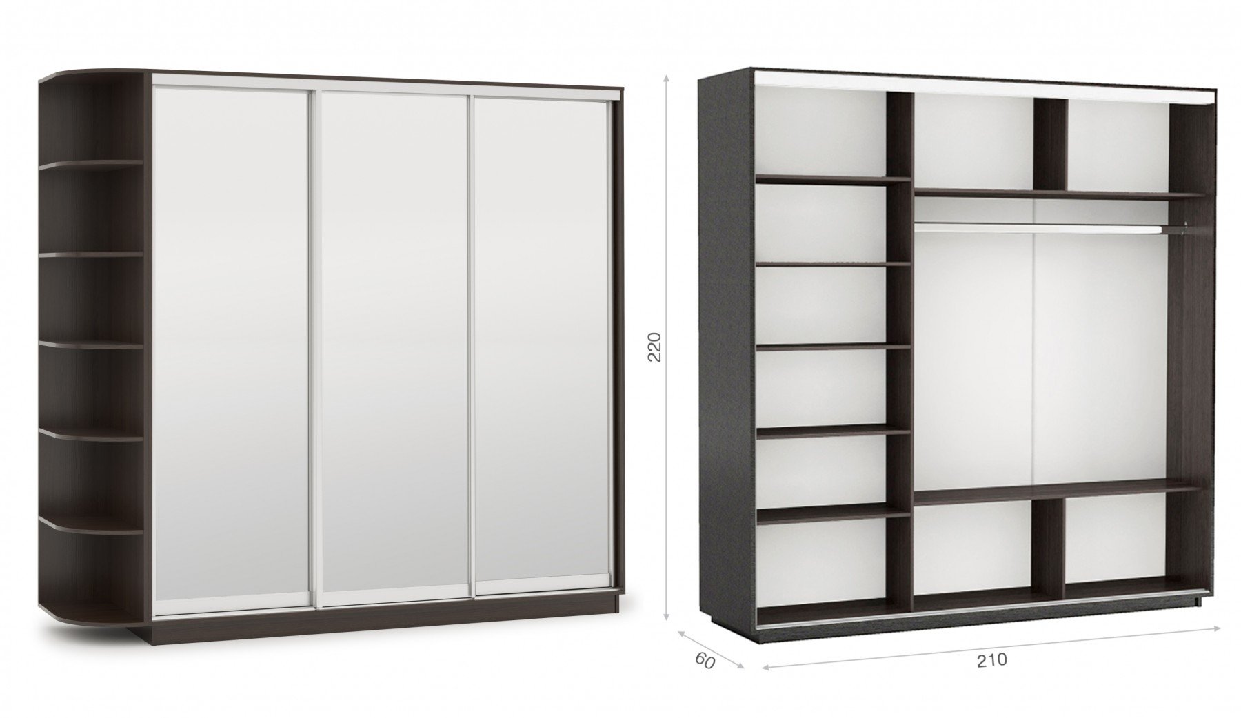 Шкаф-купе трехдверный 210х220 ЗЗЗ «Тетрис» Венге