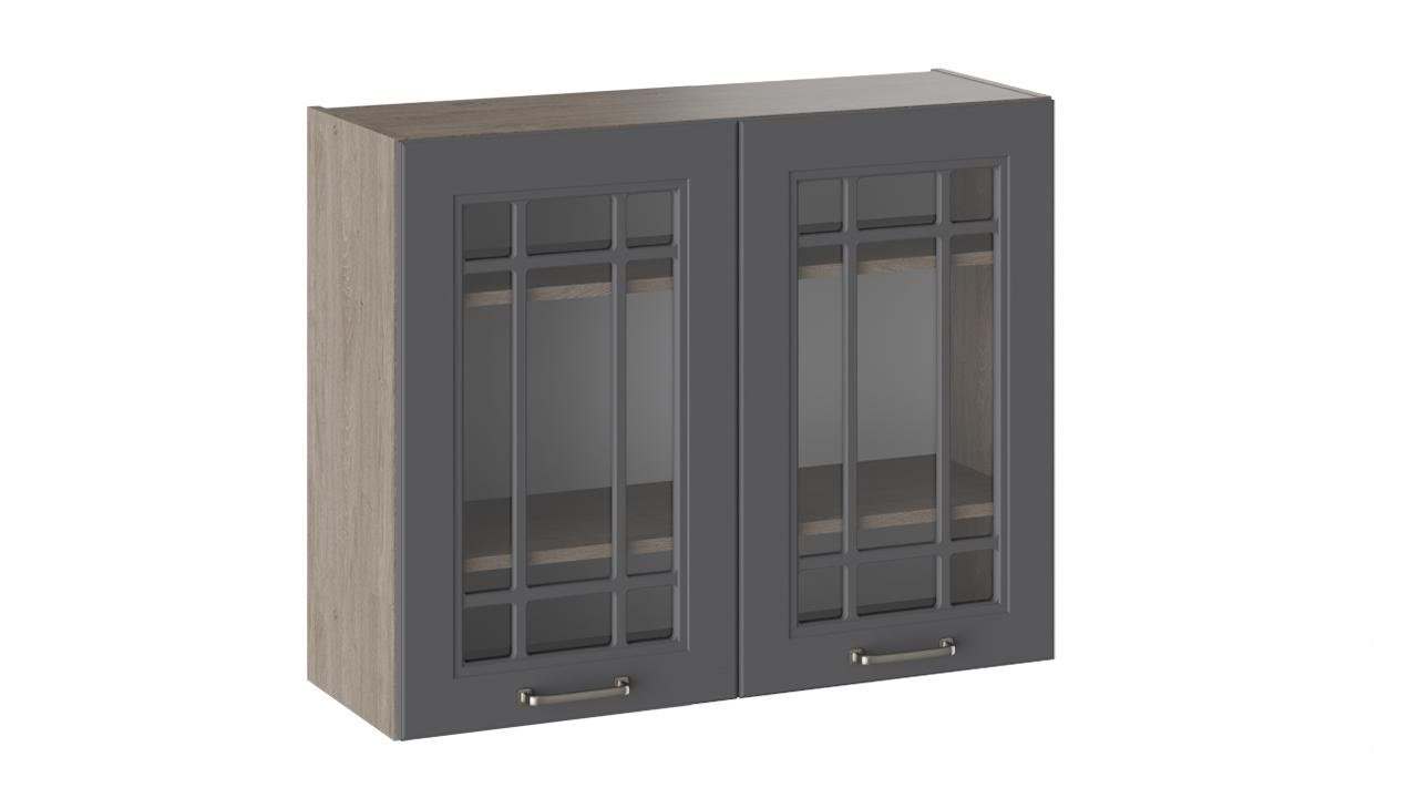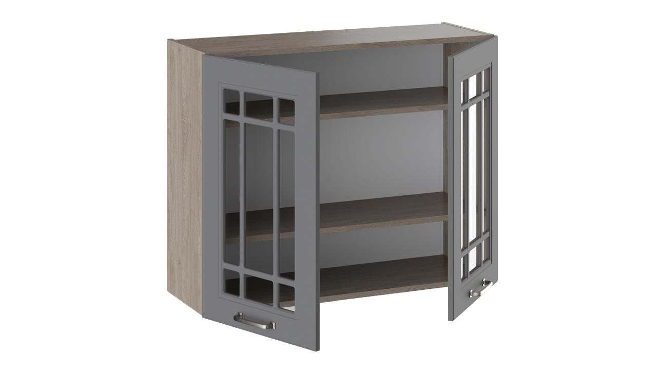 Шкаф навесной со стеклом «Одри» В_72-90_2ДРс Серый шелк