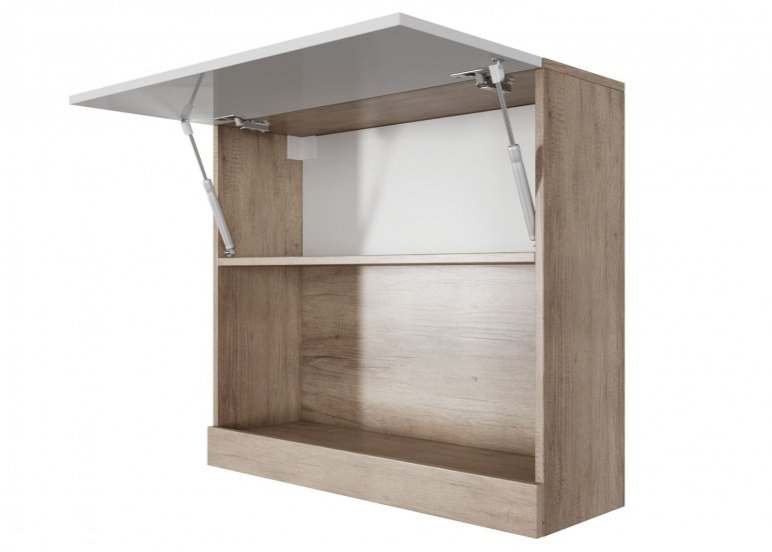 Шкаф навесной горизонтальный 800 «Ницца» Каньон светлый/Белый глянец