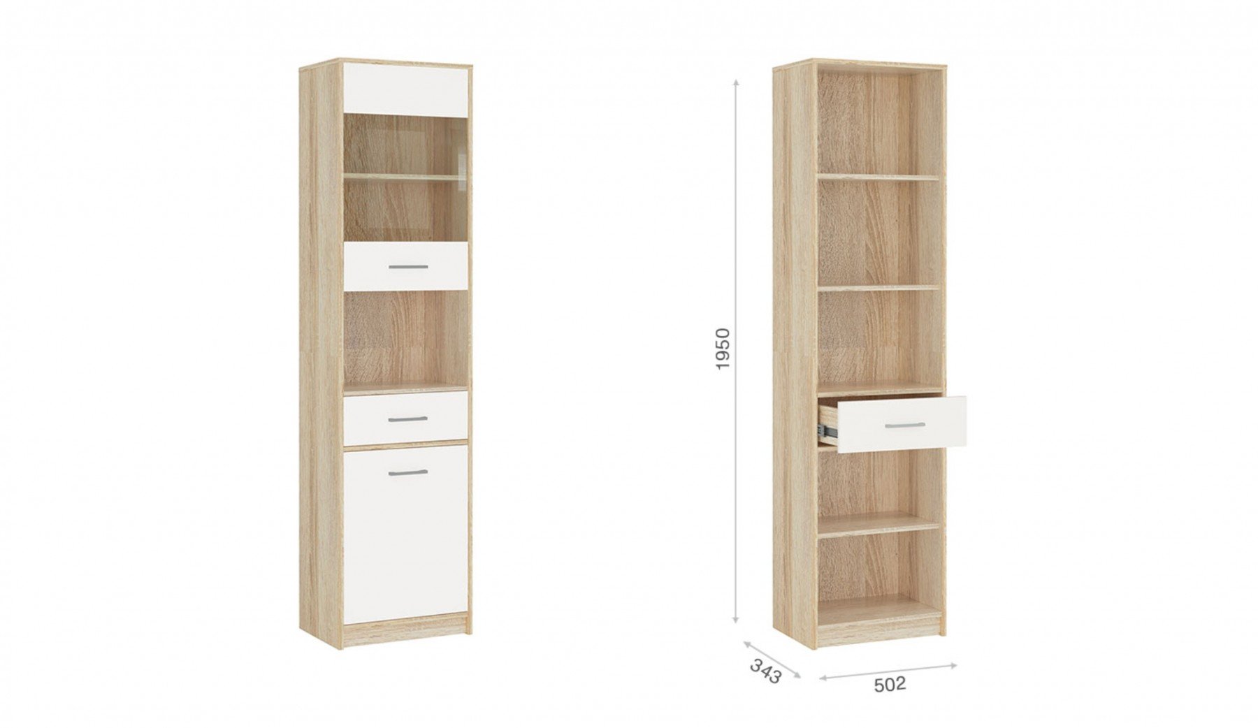 Шкаф-Пенал 1в1д1ящ «Стелс» Дуб сонома/Белый