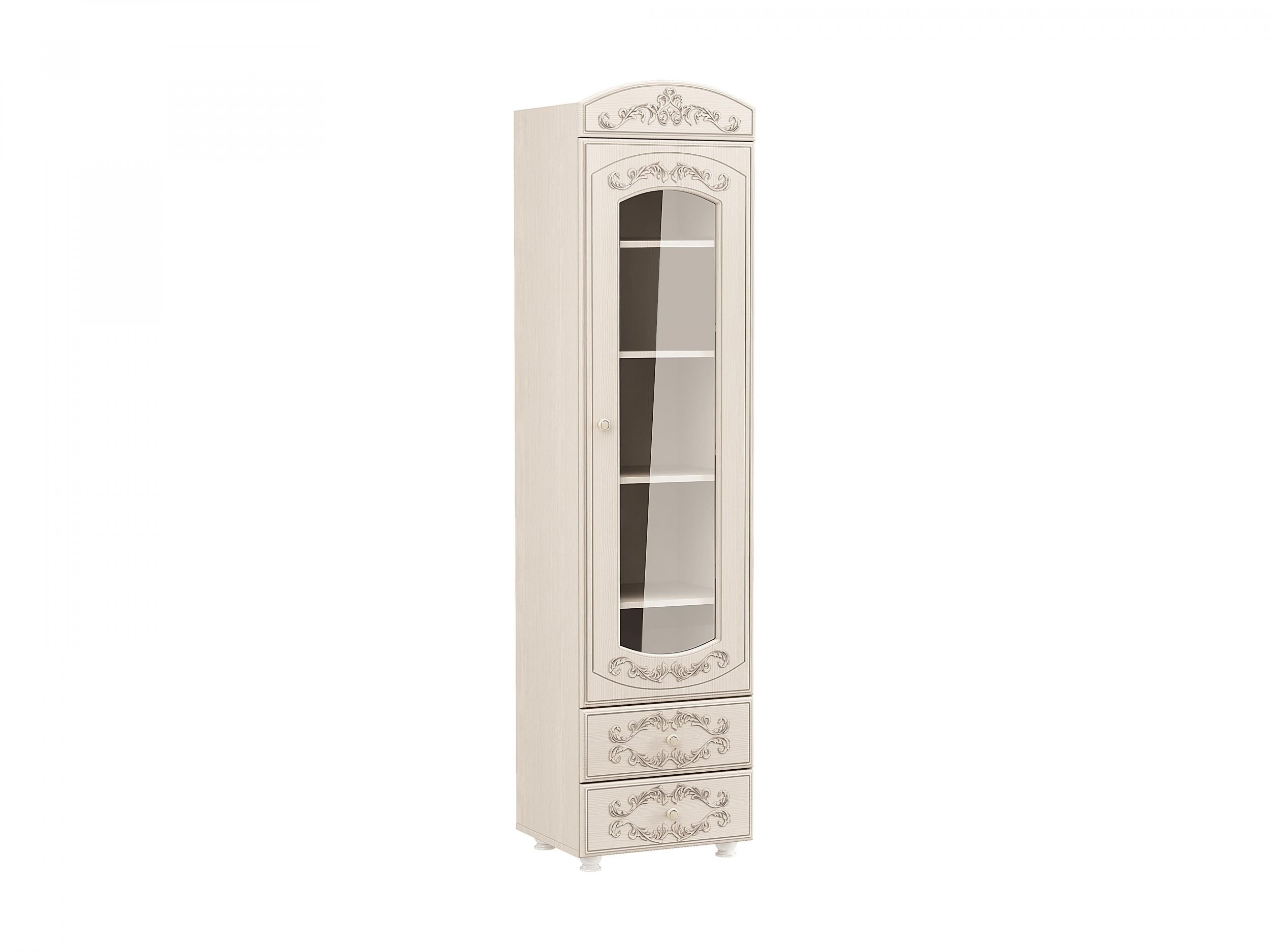 - Шкаф-пенал со стеклом «Каролина» Патина/Вудлайн кремовый/Сандал белый