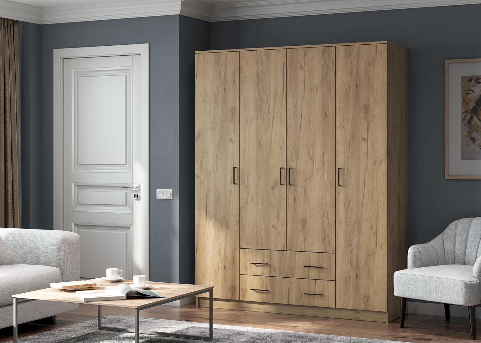 Шкаф распашной четырехстворчатый «ШК 1» Дуб золотой