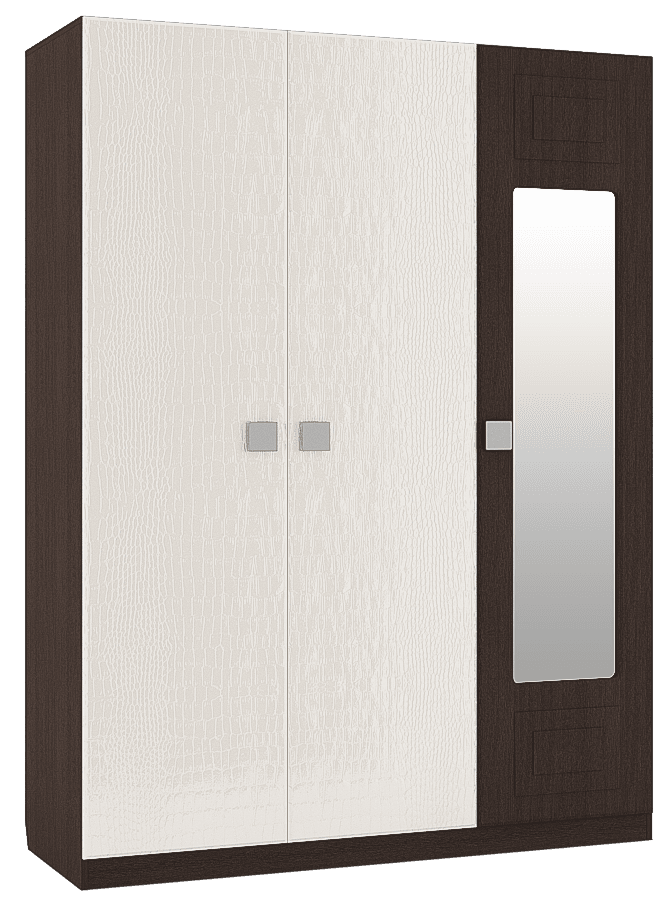 Шкаф трехстворчатый с зеркалом справа «Анастасия» АН-3К венге/крокодил белый